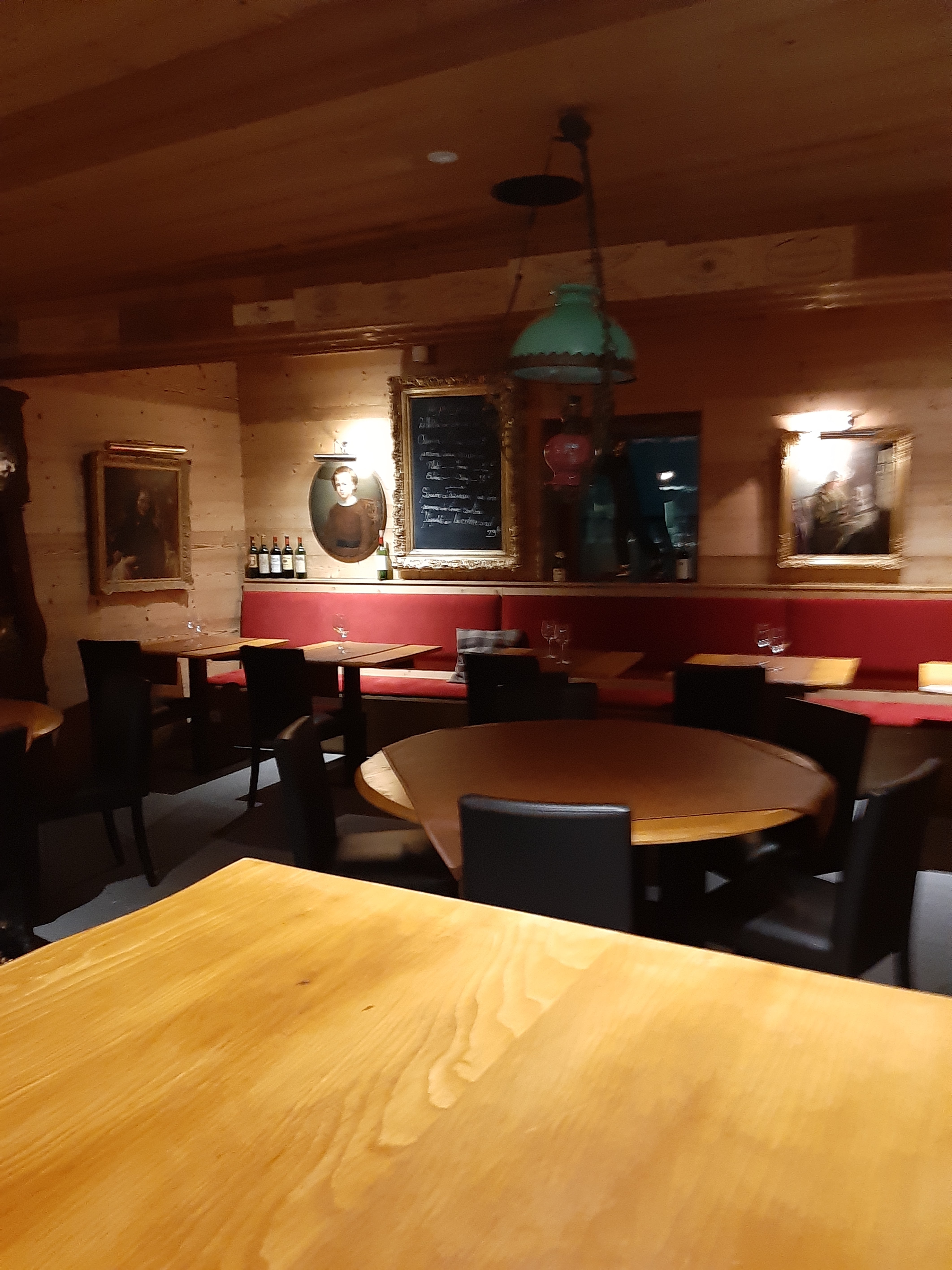 Endroit sympathique Style Chalet de montagne. Tout est fait sur place avec la cuisine ouverte. Les repas sont excellent, ainsi que les dessert home made. Très bonne carte des vins.