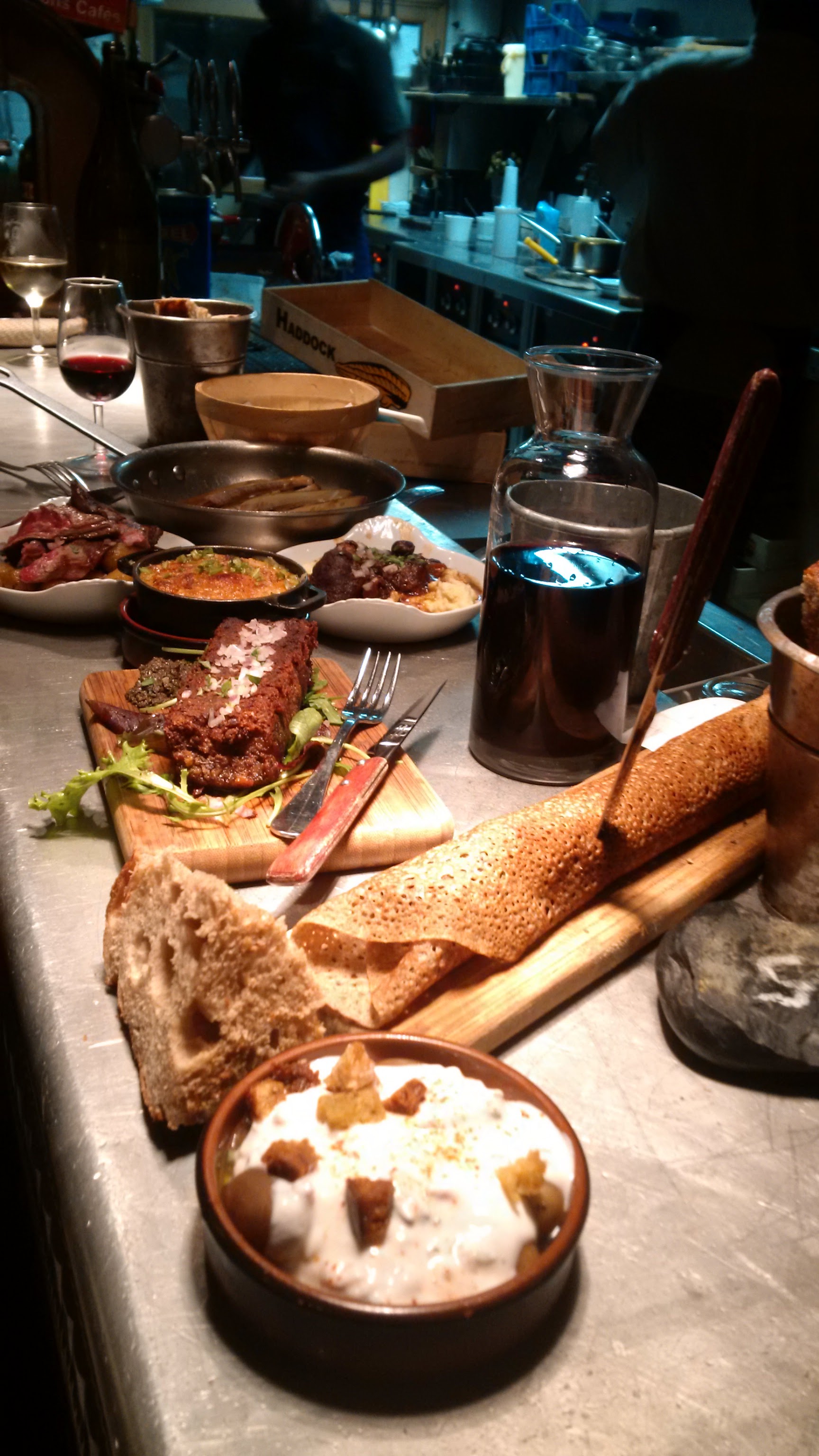 Trop bonne adresse ! Nous avons partagé des entrées hyper gourmandes (je recommande le rôti de porc et l’artichaut à la juive) suivies de belles pièces de viandes notamment le bœuf Wellington qui est succulent et une très belle carte des vins… la cuisine était conviviale et réconfortante, l’équipe était aux petits soins et une bonne ambiance générale. On en fera sûrement notre QG du vendredi soir !