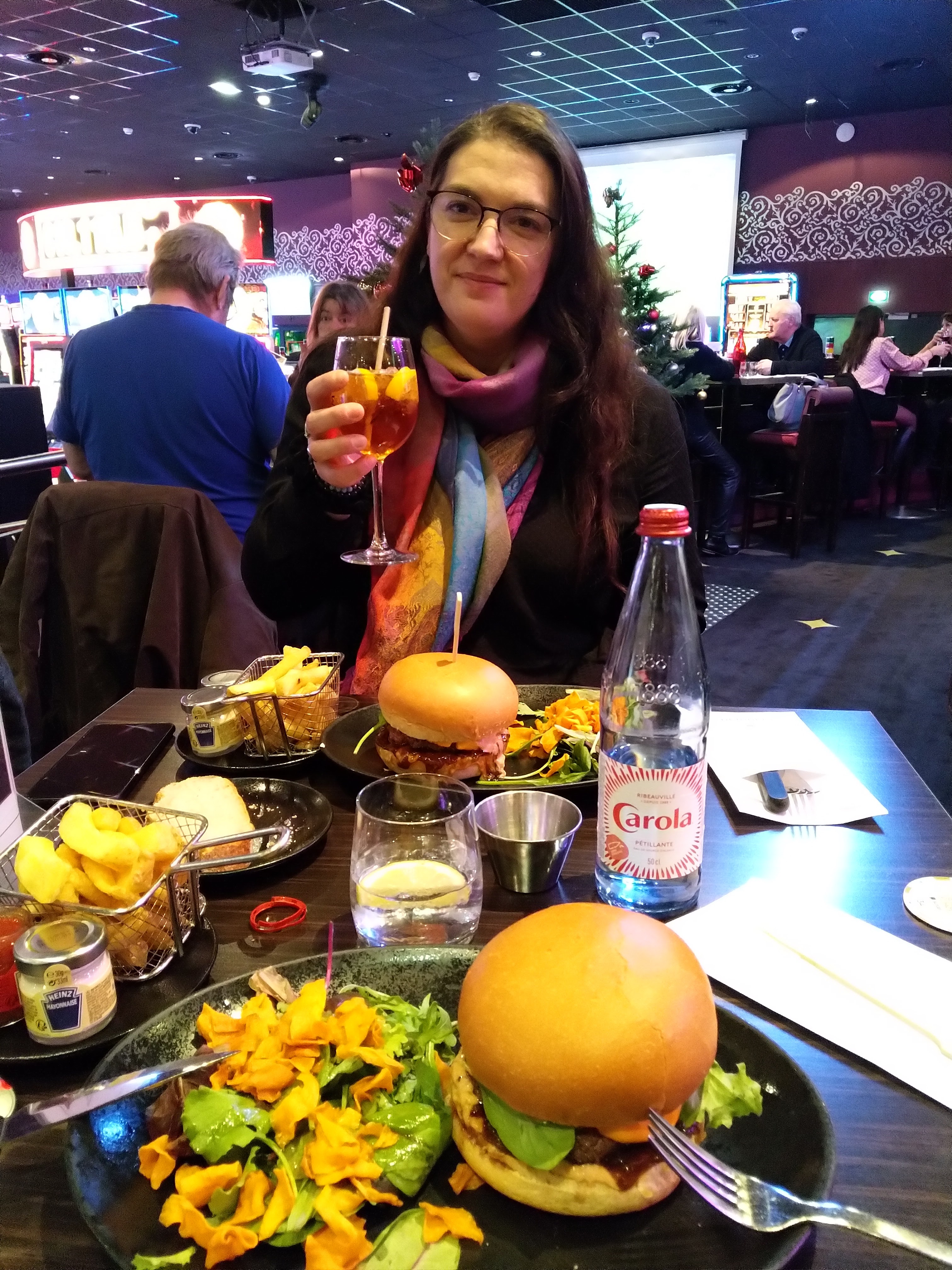 Un peu bruyant, normal pour un casino ;) Burger excellent, un peu plus chere que la moyenne mais bon, personnel agreable et nous avons été rapidement servis. Le dessert genial, une dame blanche avec une chantilly vanillée épaisse (mascarpone ?) Trop bon.