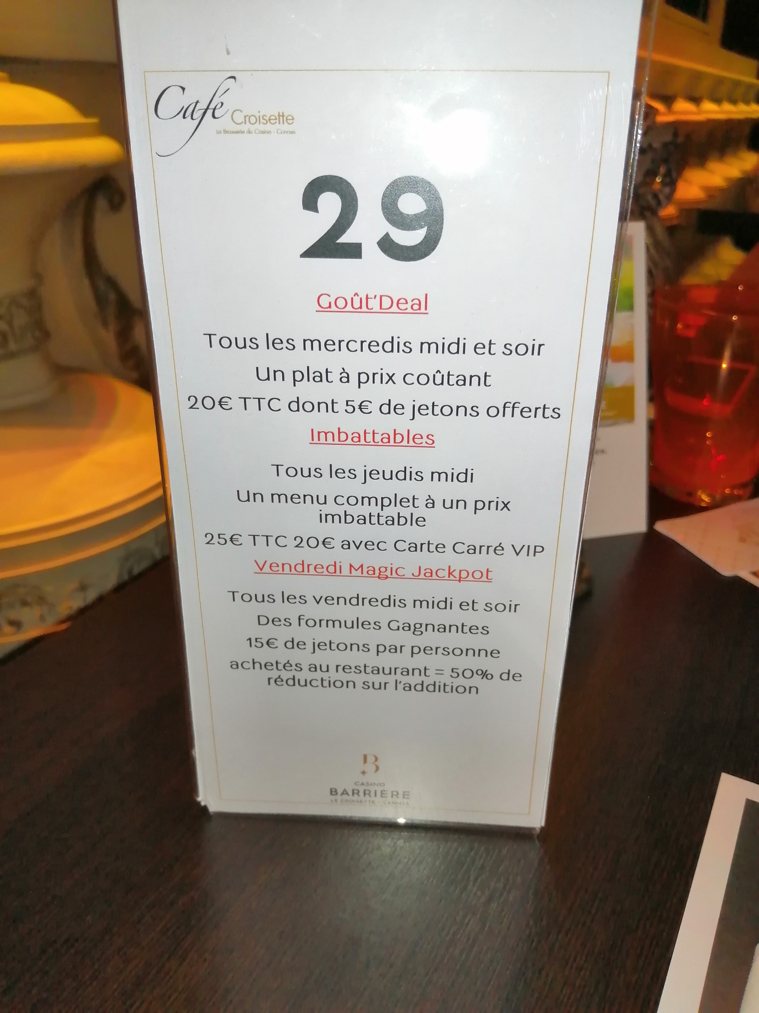 Restau très bon et abordable machine à sous diverse de temps en temps jeton pour machine offert au adhérents casino super sympa