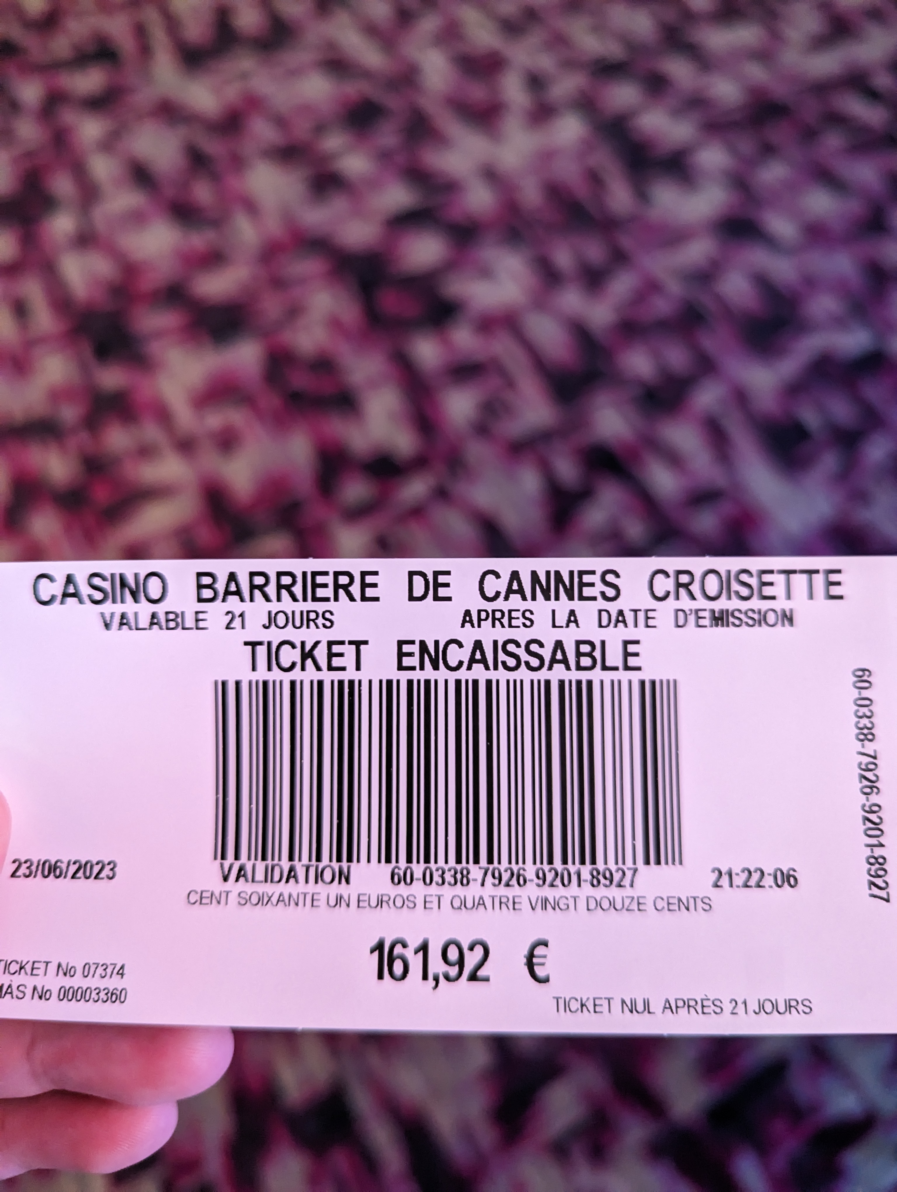 Je ne suis pas fan des casinos de base, donc j'y vais rarement. J'ai trouvé que ça n'était pas très propre et un peu défraîchi, pour un casino sur la Croisette, je m'attendais à mieux. Après je ne suis qu'une cliente lambda, je n'ai pas accès aux salles VIP, j'espère qu'elles sont en meilleur état.