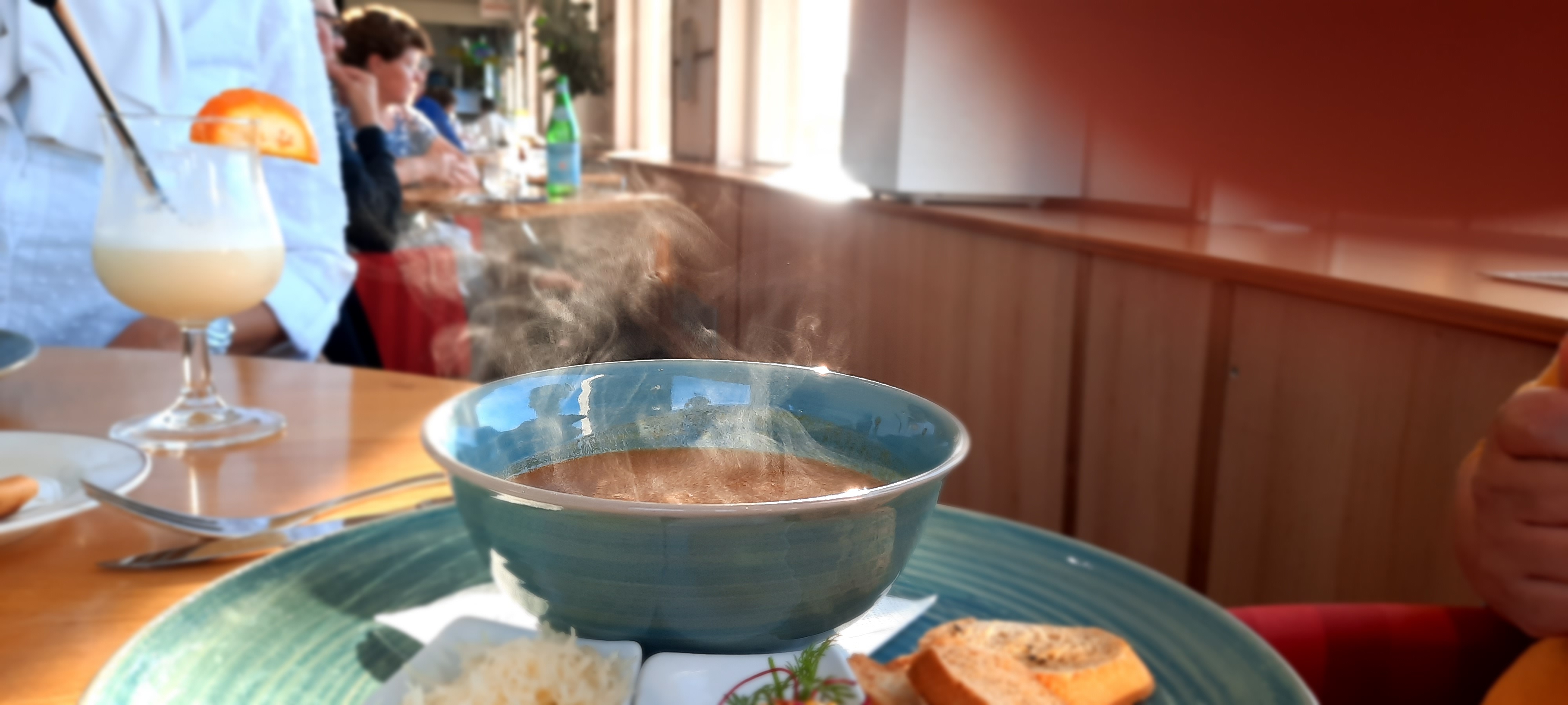 Lieu agréable lumineux grâce aux grandes baies vitrées. Endroit qui reste agréable malgré l étroitesse des lieux en salle des machines peu d espace pour circuler et les machines très proches des une des autres. Le restaurant avec vue sur mer agreable endroit bien su il doig également petit la carte est suffisamment garnie mais sans excès, les plats sont bien garnis et le personnel est souriant et conseille bien. Petit bémol pour se rendre au restaurant il faut passer par les salles des machines, accès aux personnes à mobilité réduite, pas de parking pour la clientèle il faut trouver une place dans les rue et bien sûr payante.