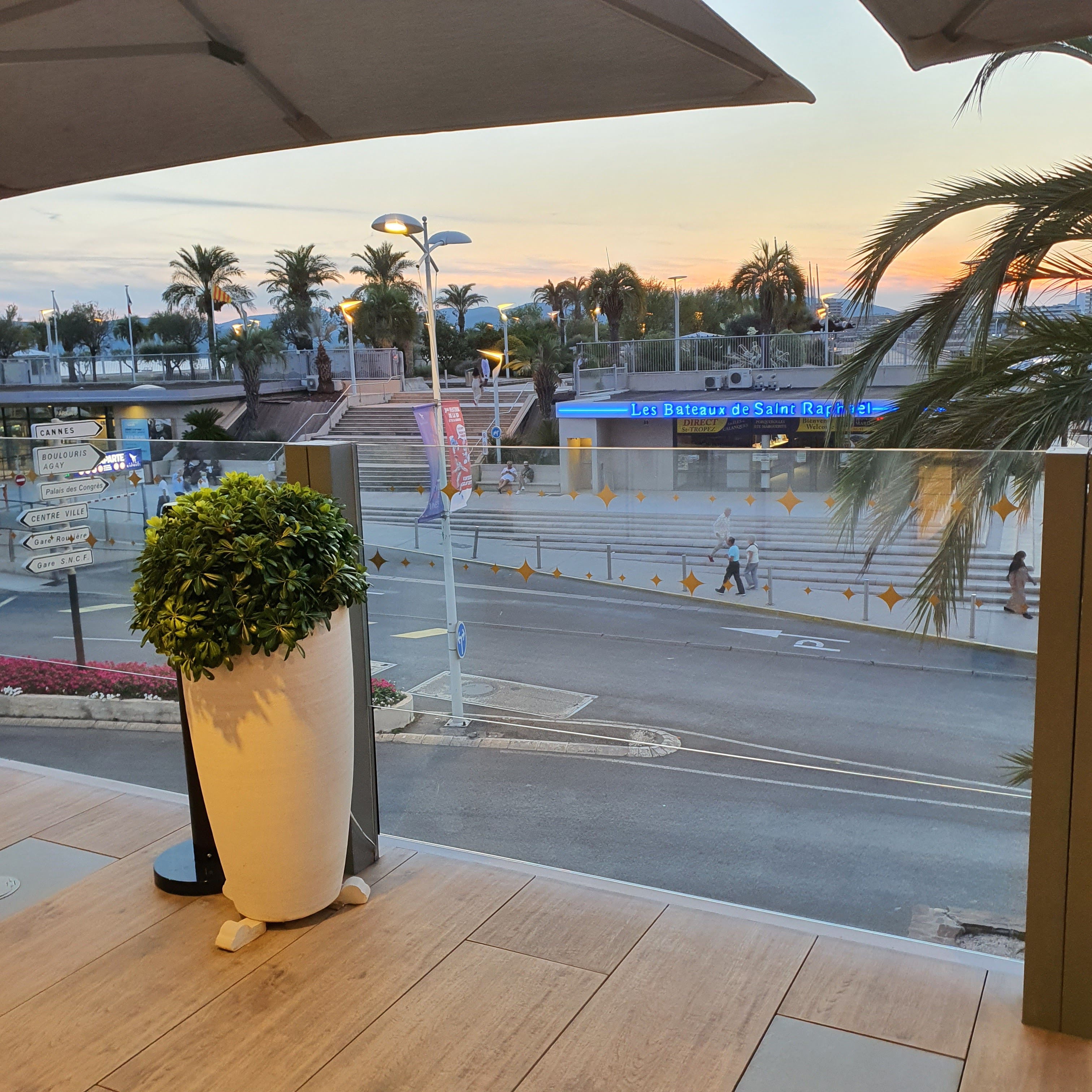 Magnifique terrasse avec vue sur le port de Saint Raphaël.