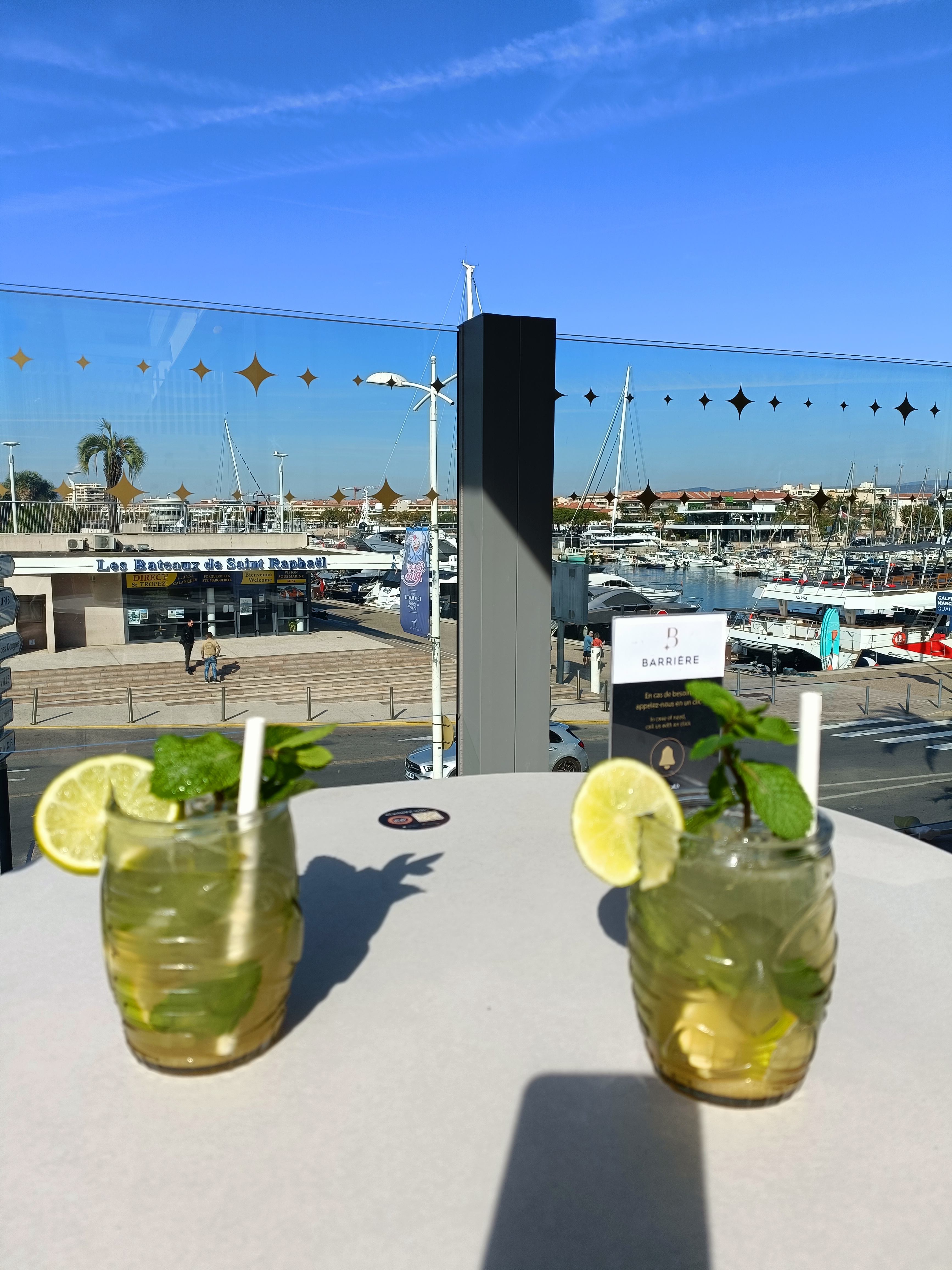 Casino Barrière, oui.....terrasse agréable et très confortable, jolie vue sur le port certes - mais service bien moyen : serveuse à peine aimable, malgré une affluence restreinte 20 minutes avant la prise de commande et presque autant avant d'être servi sur des tables sales (ça se voit même sur les photos), dans des verres très ordinaires. Donc forcément un peu déçus ! Pas digne de cette enseigne.