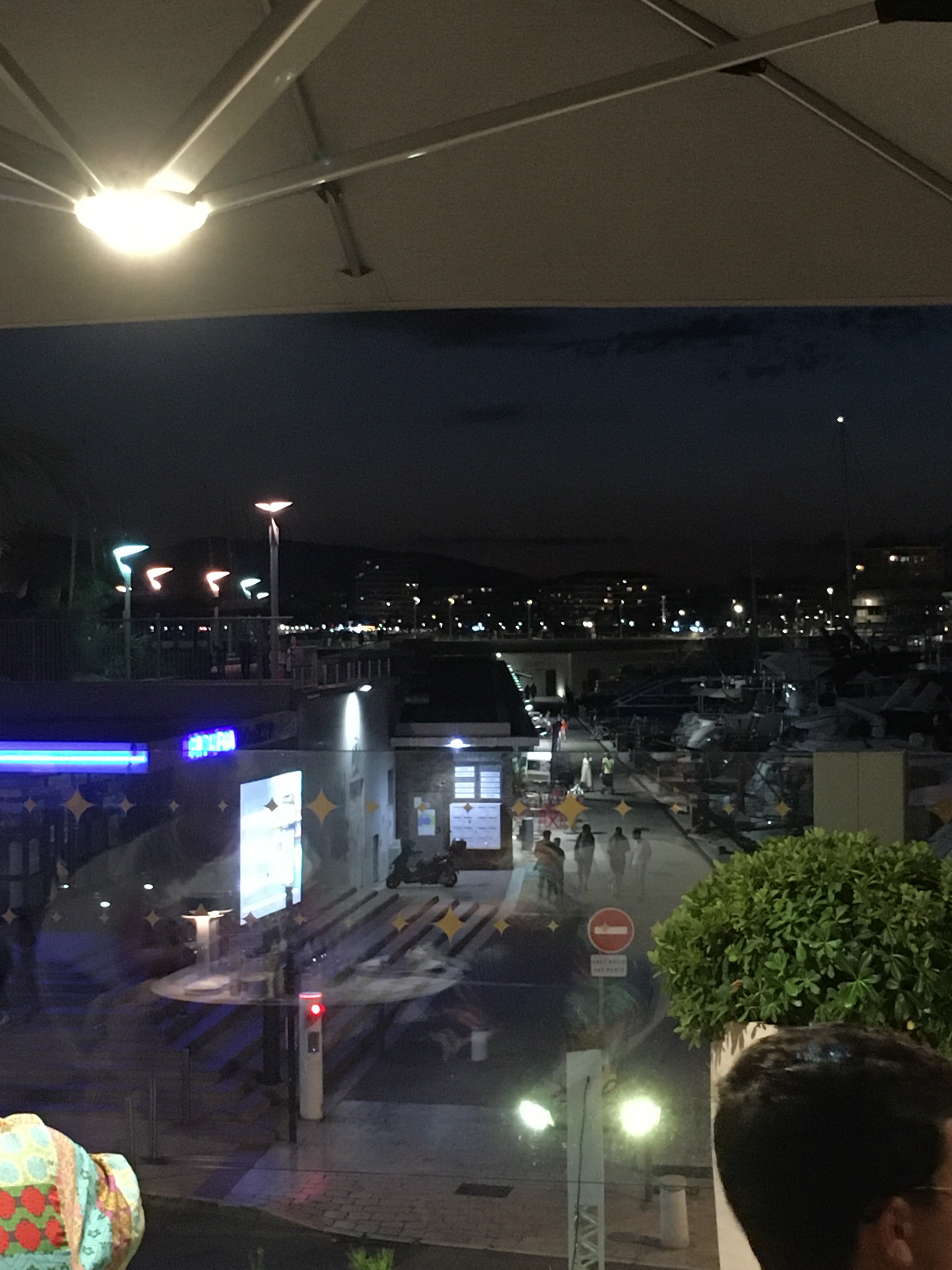 Après les travaux nous découvrons une belle terrasse qui offre un magnifique point de vue sur le vieux port et sur le coucher de soleil. Or à l'heure du coucher de soleil il n'y a plus aucune place pour boire un verre. Et avant, il y fait une chaleur intenable. N'y a t il pas eu un architecte ou un ingénieur qui aurait pu prévoir un passage d'air plutôt que des garde corps vitrés ? Les parasols sont beaux mais fixes et utiles que lorsque le soleil est à son zénith. Aux toilettes, ni papier toilette, ni essuie mains.....