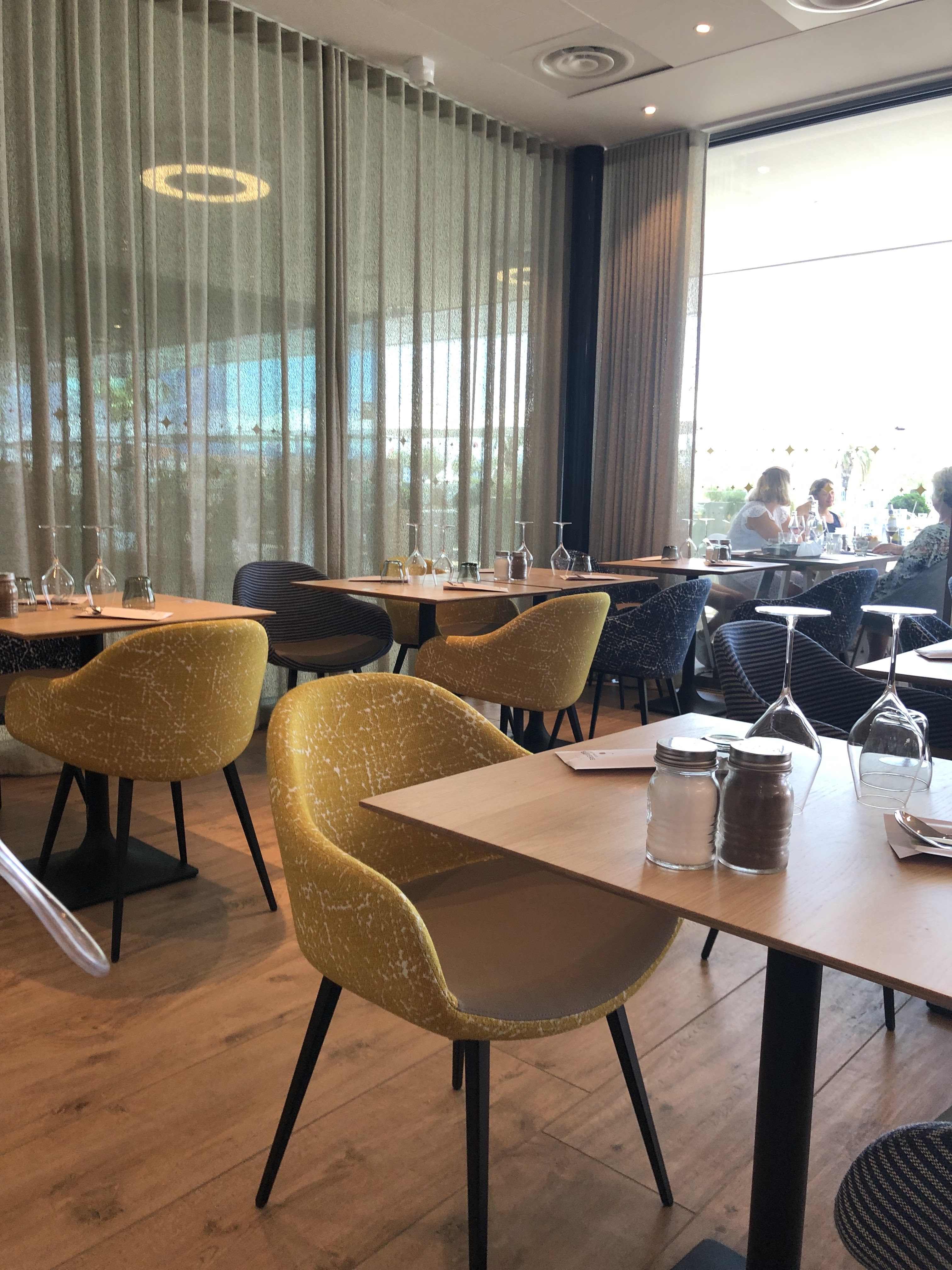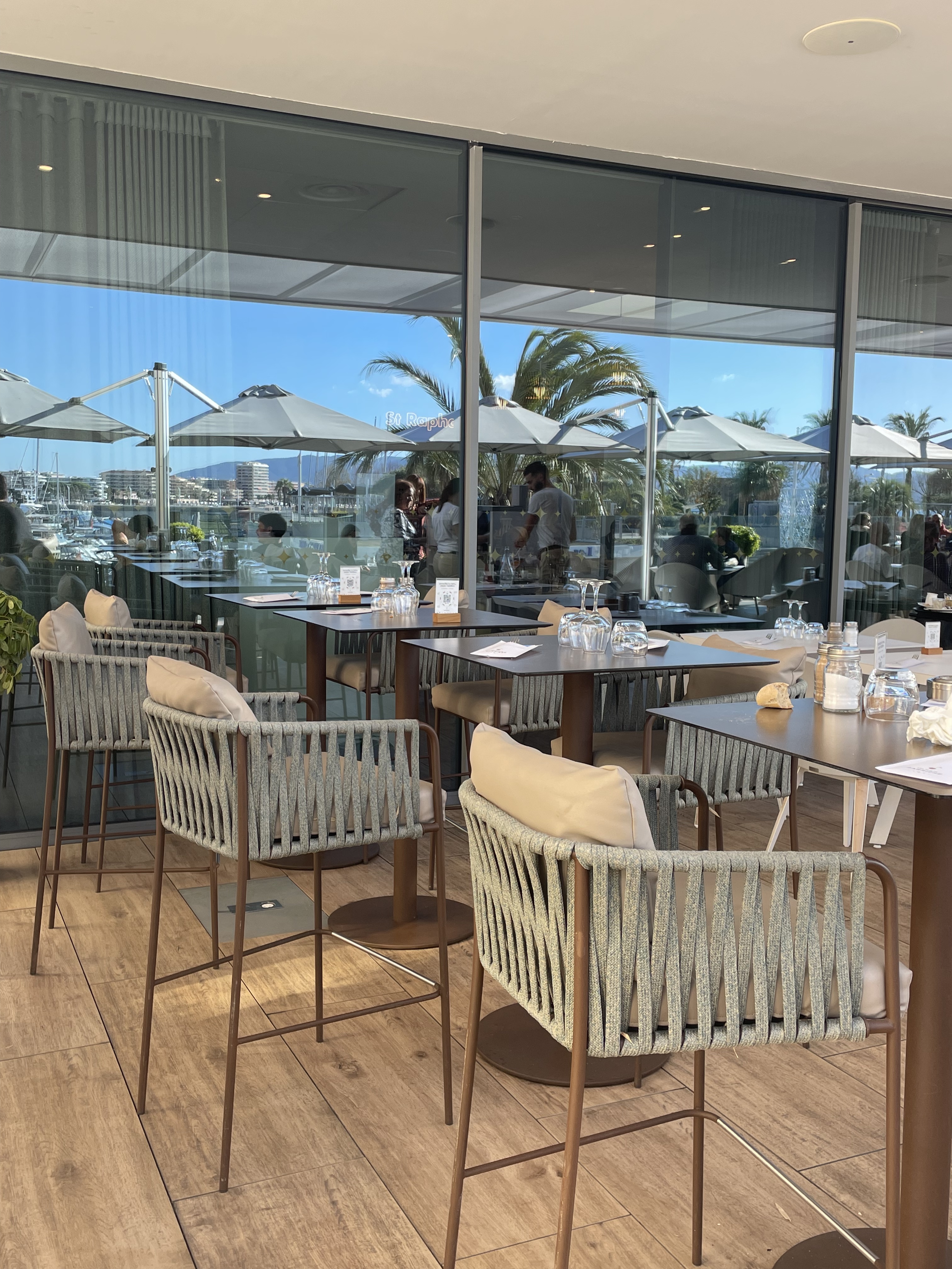 4* pour la rénovation, la décoration et la belle terrasse face au port de plaisance...et au soleil couchant et rasant qui vous brûle et vous éblouit puisque les parasols sont fixes et ne protegent en rien. Dommage ainsi que pour le service long et le manque d amabilité de la jeune serveuse. Ça dénote avec le cadre. Un endroit qui se veut chic mais dans les détails ne l est pas.