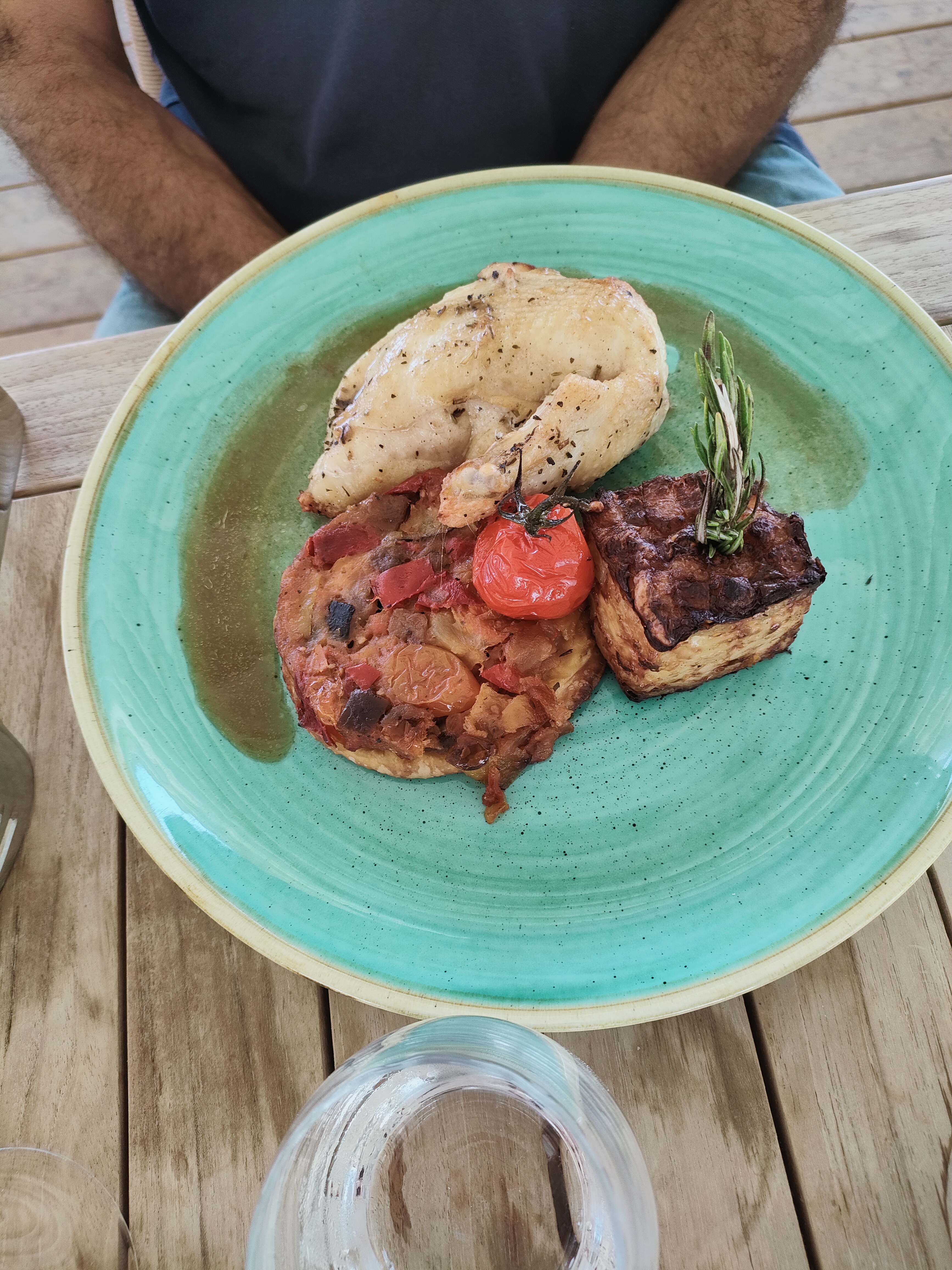 Pour le restau sur la plage. Service correct, Poulet farcis. Un bon Le carpaccio de saumon. Un très bon. Le service un très bien. Tjs avec le sourire malgré le masque.