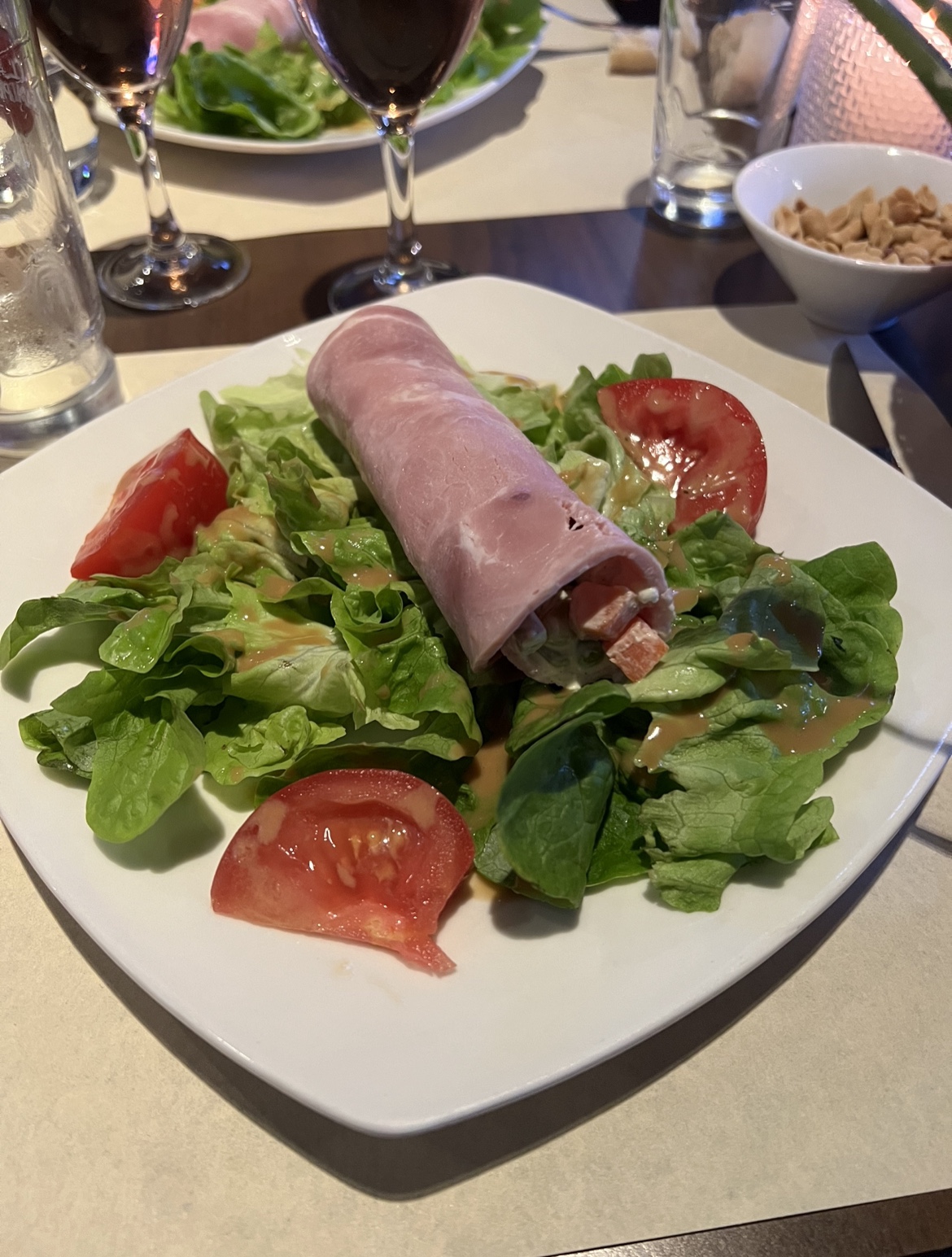En plus des jeux de table et la roulette, nous avons testé le menu à 13, 90 €. Très bon rapport qualité prix avec entrée, plat, dessert, 3 verres de vin par personne et café. Qui dit mieux ???🤔🤔🤔