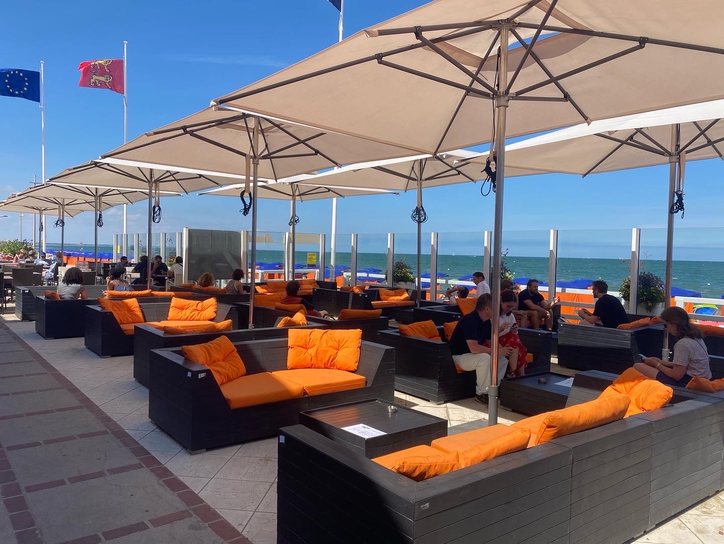 Terrasse très sympa. L'organisation des bancs/canapés donne un aspect très cosy, la carte des boissons est variée. Vue splendide et la barrière en plexiglas permet de stopper le vent et le sable ce qui rend la température très agréable, et les affaires ne s'envolent pas !
