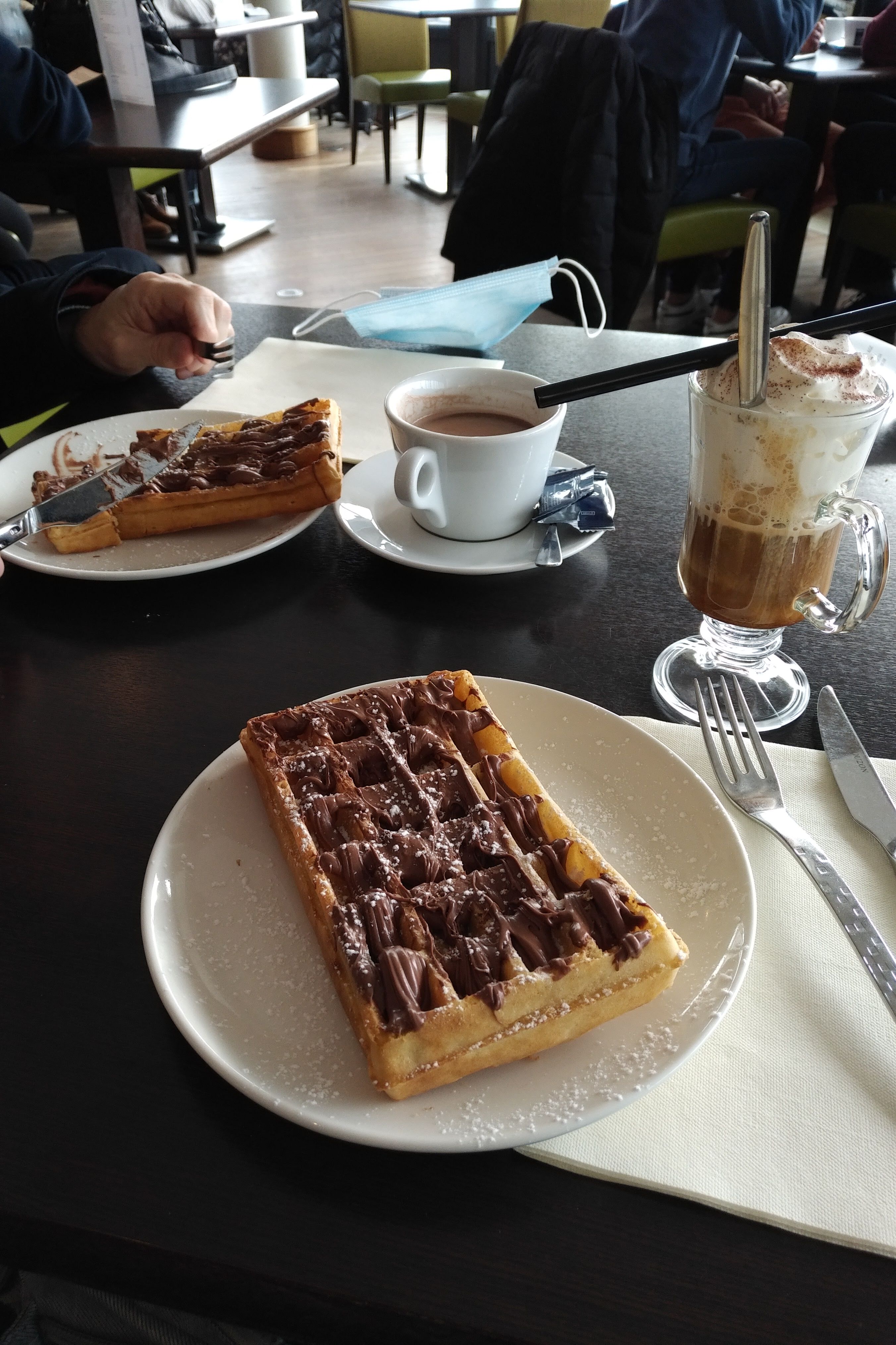 Gaufres froides ( arrivées froides ) ... Je n'avais jamais eu ça, même s'il faisait très froid dehors ! Verre d'eau pitoyable... Une tasse de café ! Bref ... À éviter si d'autres lieux sont ouverts ....