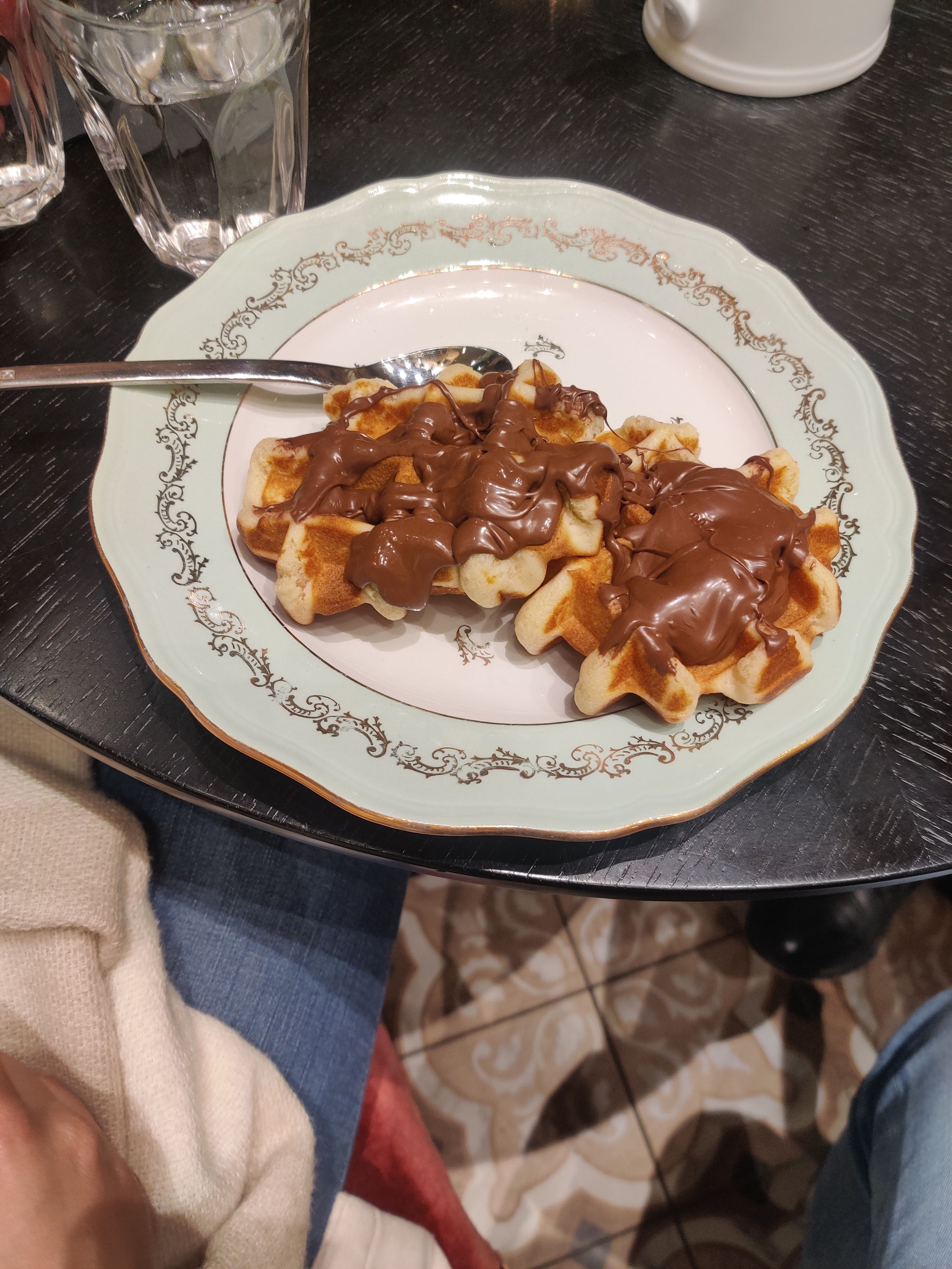 Pâtisserie parfaite pour le goûter. Nous avons commandé les gaufres et nous les avons beaucoup aimées. Le café normal.