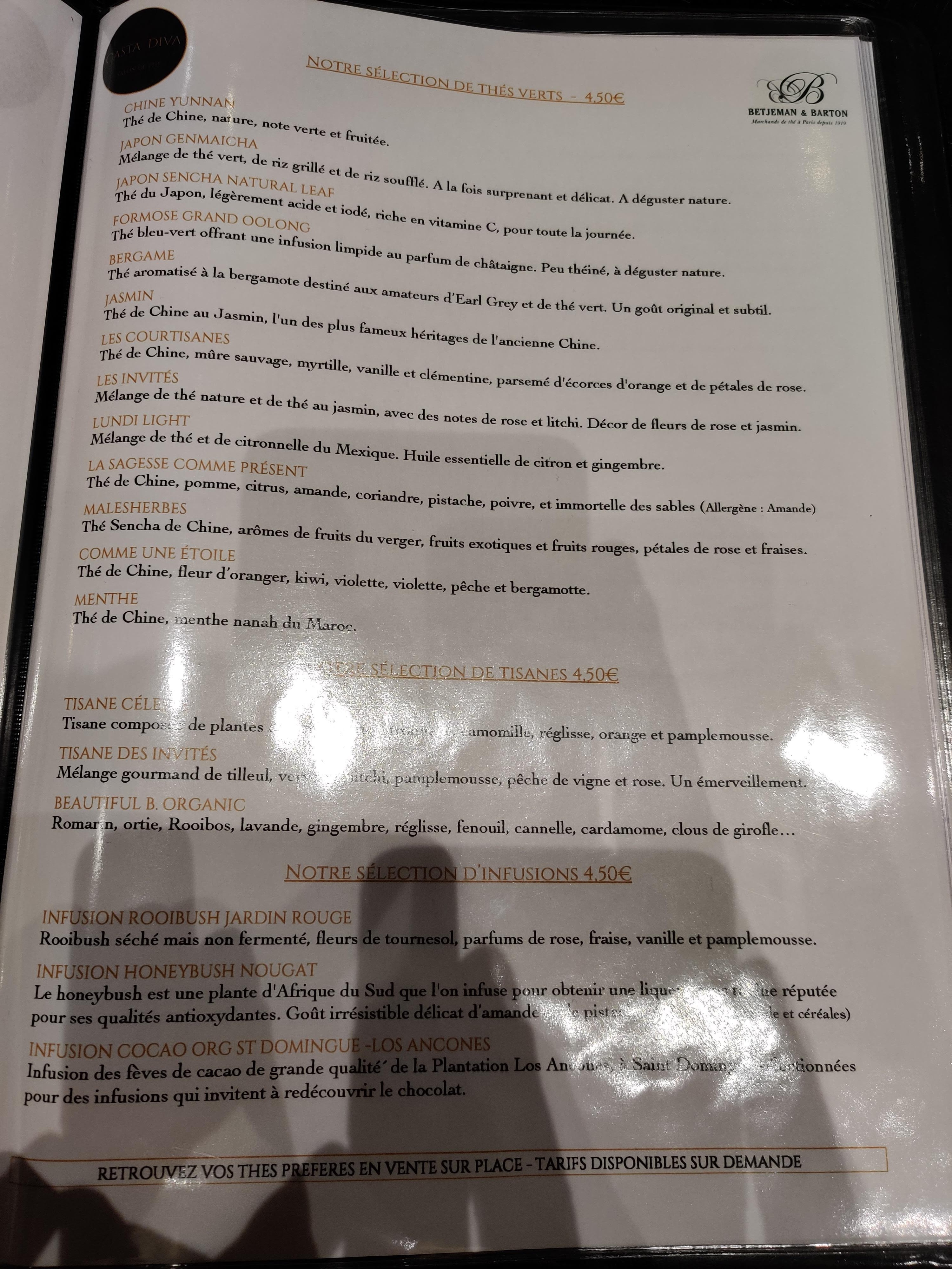 Le casta diva où comment se relaxer avec des thés d’exception et une ambiance chaleureuse. Très bon, et service excellent, je recommande! Très belle déco !! Ps: la salle du haut, c’est ma préférée
