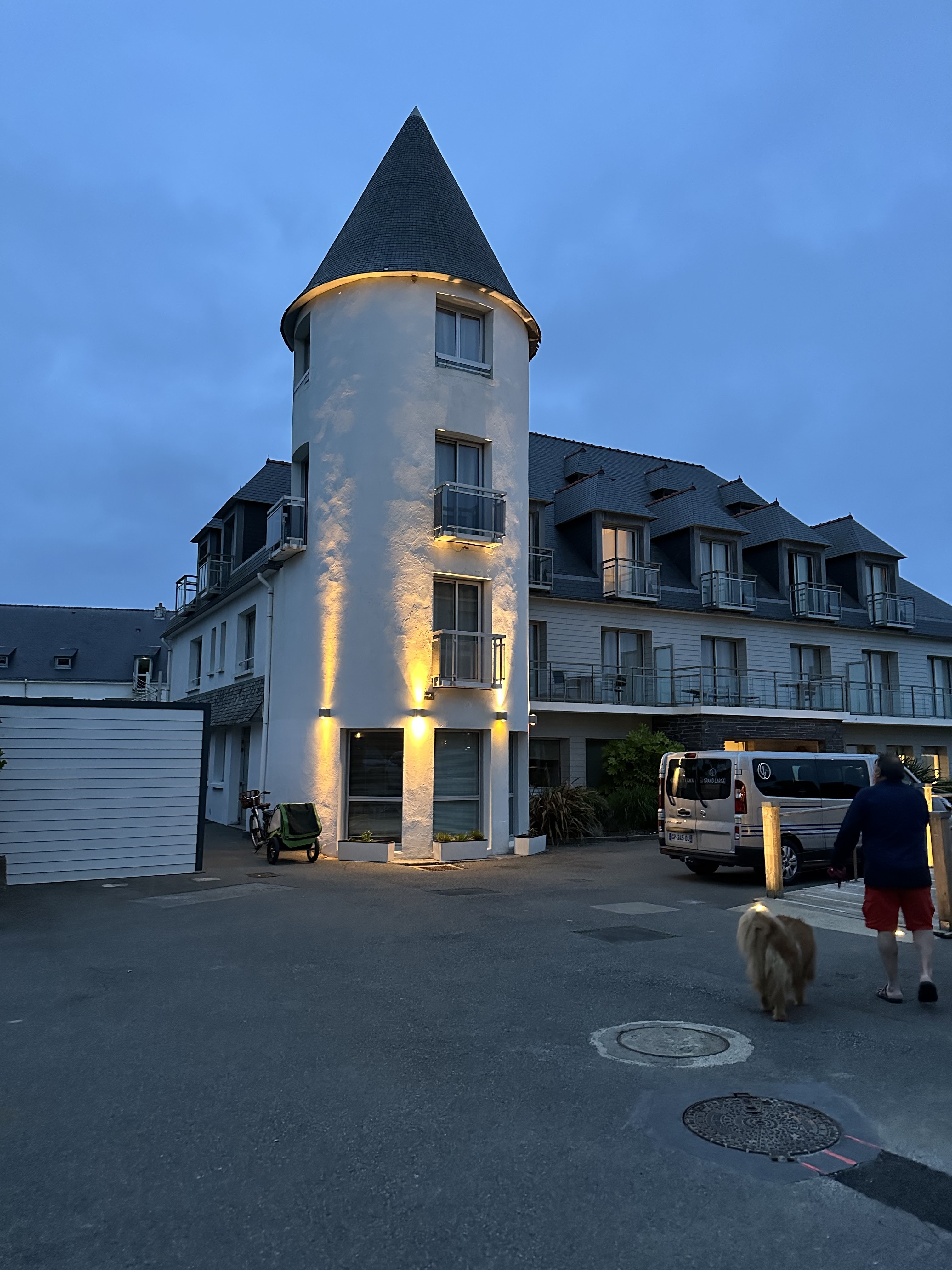 Une belle expérience à Belle île, cependant beaucoup de choses à redire d’un hôtel de ce standing... Chambre sans charme (210) moquette tachée, papier peint qui se décolle. Nous payons un supplément chien 20 euros par nuit et aucun attention ... au bout de deux nuits nous sommes obligés de réclamer une gamelle ... nous avions mis le plateau servant pour le café par terre pourtant avec les croquettes dedans ... pas de cafetière ni de stick à café soluble en chambre ! (Seul deux sachets de thé ...) absence de sucre également. Cela peut paraître des détails mais à ce prix et au vu des différents relais Châteaux que nous avons eu le plaisir de visiter c’est important ! Femmes de ménages gentilles mais pressantes, personnel dans l’ensemble sympathique mais pas au niveau d’un hôtel 4 étoiles, familiarité, messes basses, et j’en passe. Un point positif pour maîtresse de salle qui nous a trouvé une solution pour le dîner (repas gastronomique à 95 euros). Les tables sont salles en extérieur et le restent toute la journée et nous avons eu le plaisir de le constater pendant 5 jours durant. Des restes de petit déjeuner par terre jusqu’au soir ... un ensemble de désagréments qui n’ont pas leur place et qui gâche la si belle situation de l’hôtel. Copie à revoir sous peine de perdre votre 4e étoile qui ne se justifie pas.