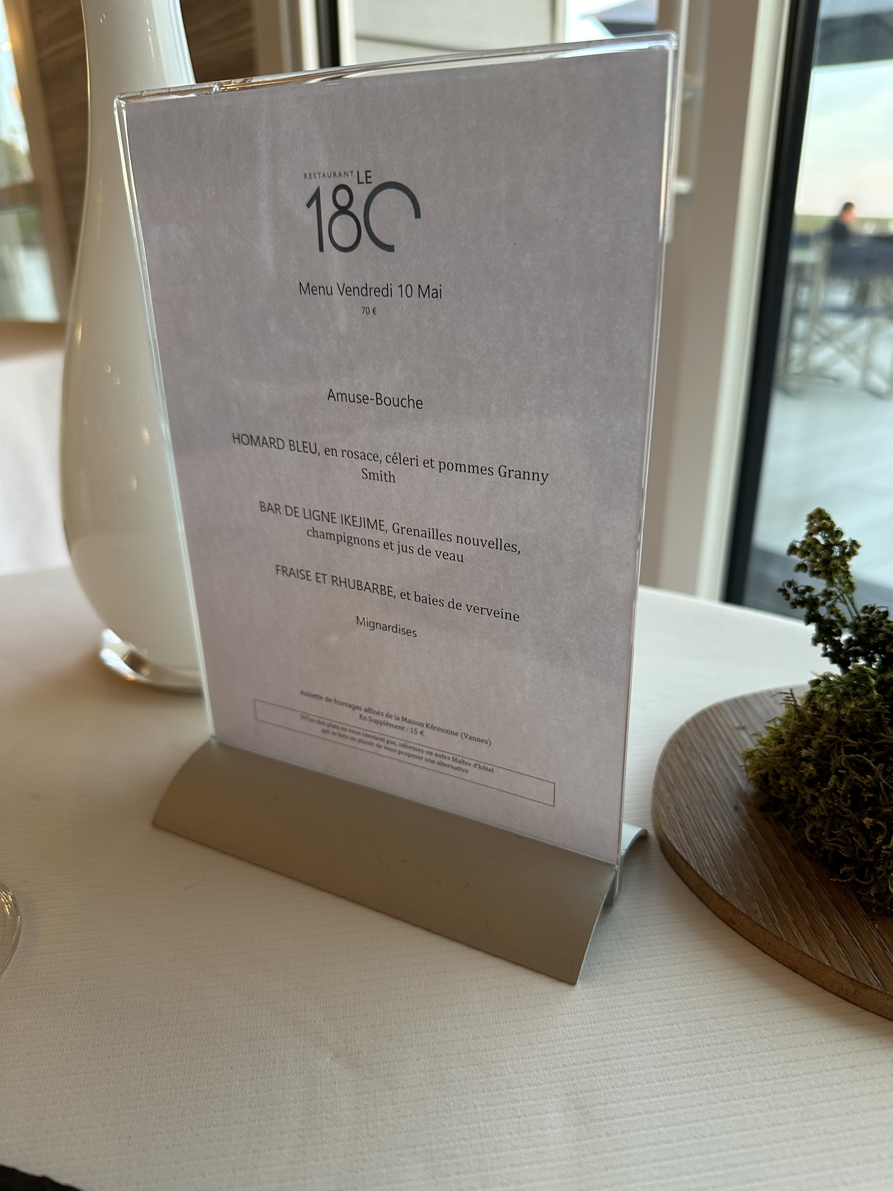 Nous avons été très bien accueillis par des petites attentions en chambre. Les équipes aussi bien de l'accueil, la restauration et la thalasso sont très attentionnées. Les dîners au 180 sont de grands moments de gastronomie et de plaisirs, le chef privilégie les produits locaux. C'est notre 6ieme séjour dans cet établissement, nous sommes toujours autant enchantés.