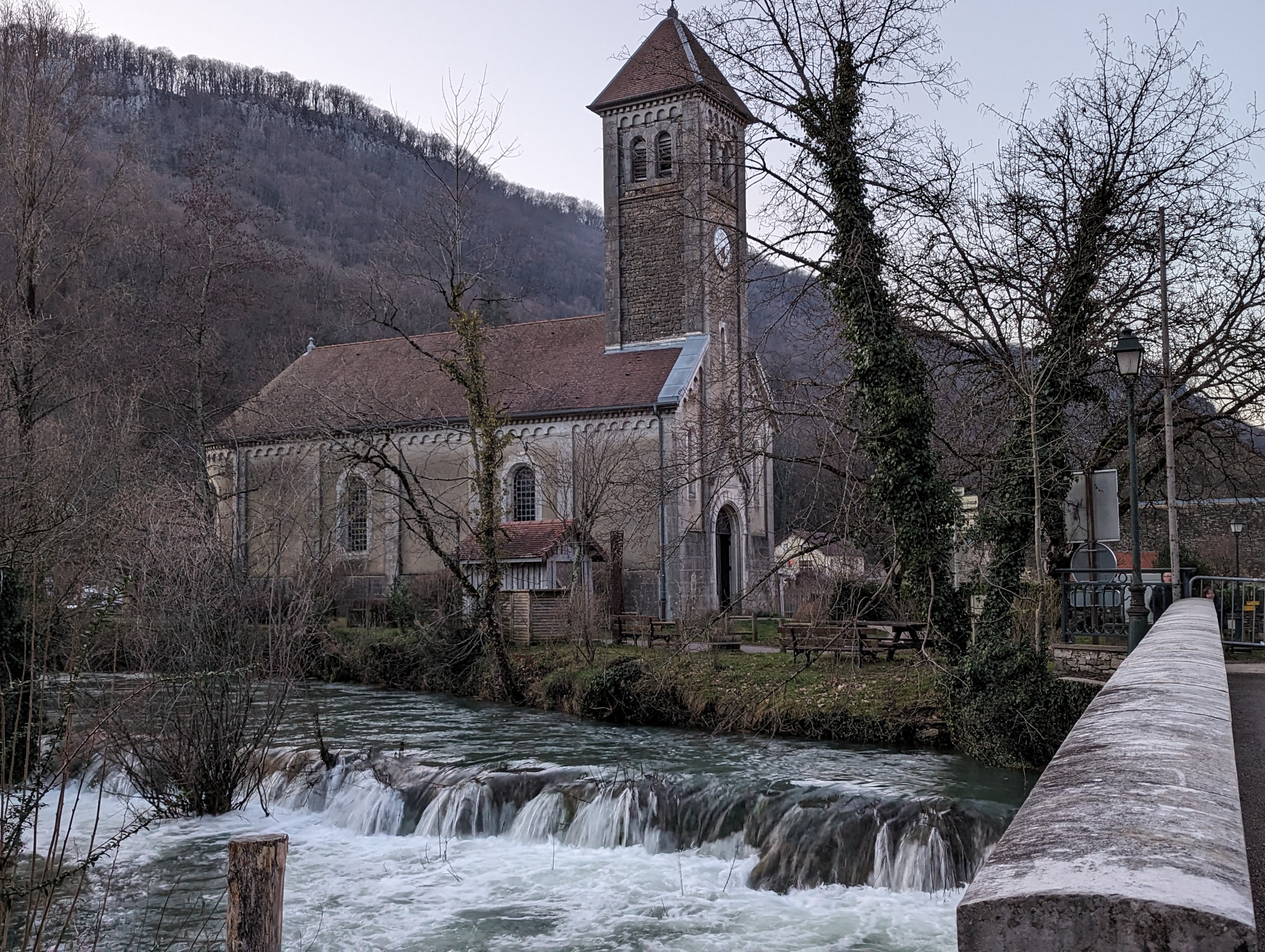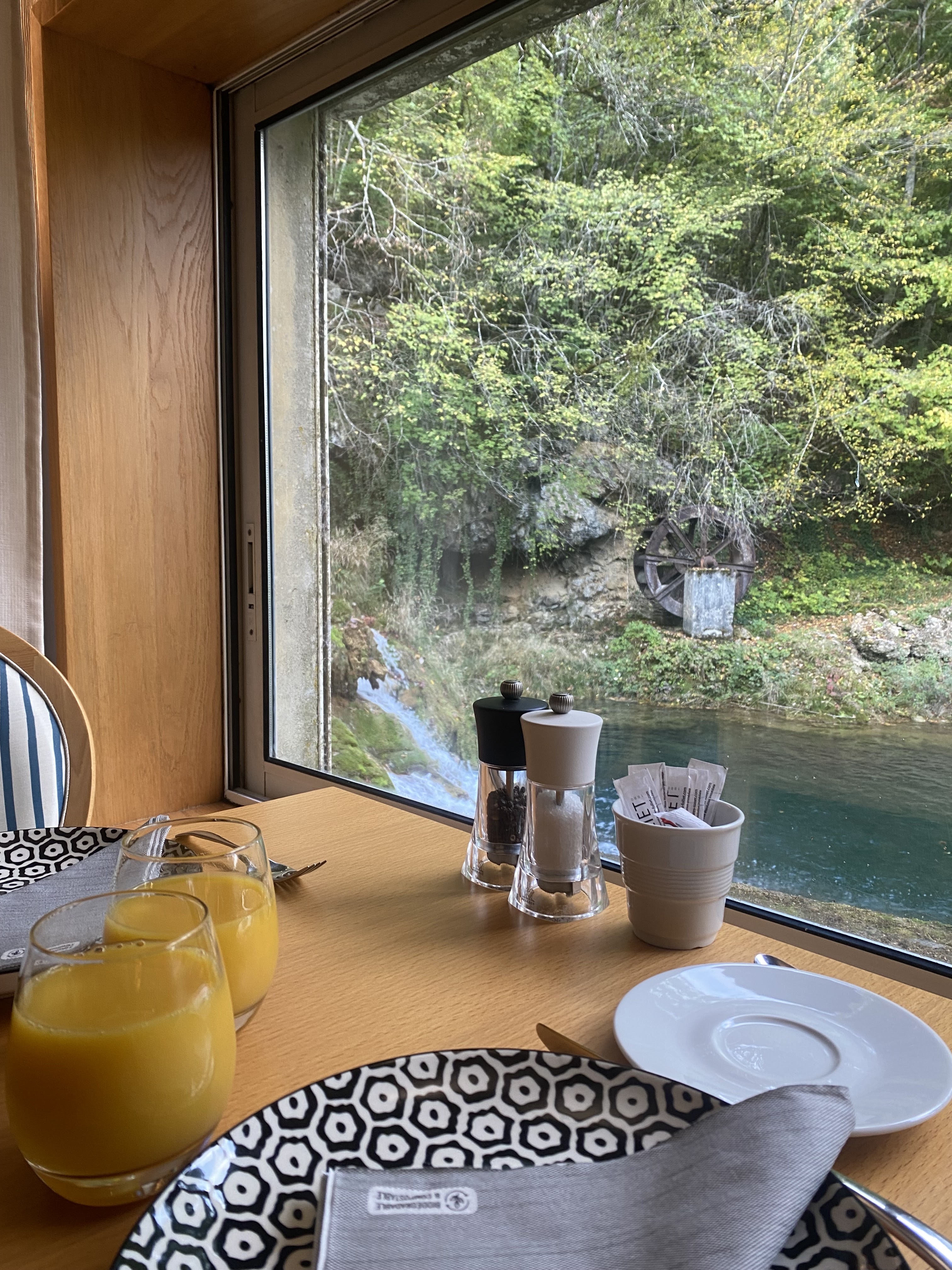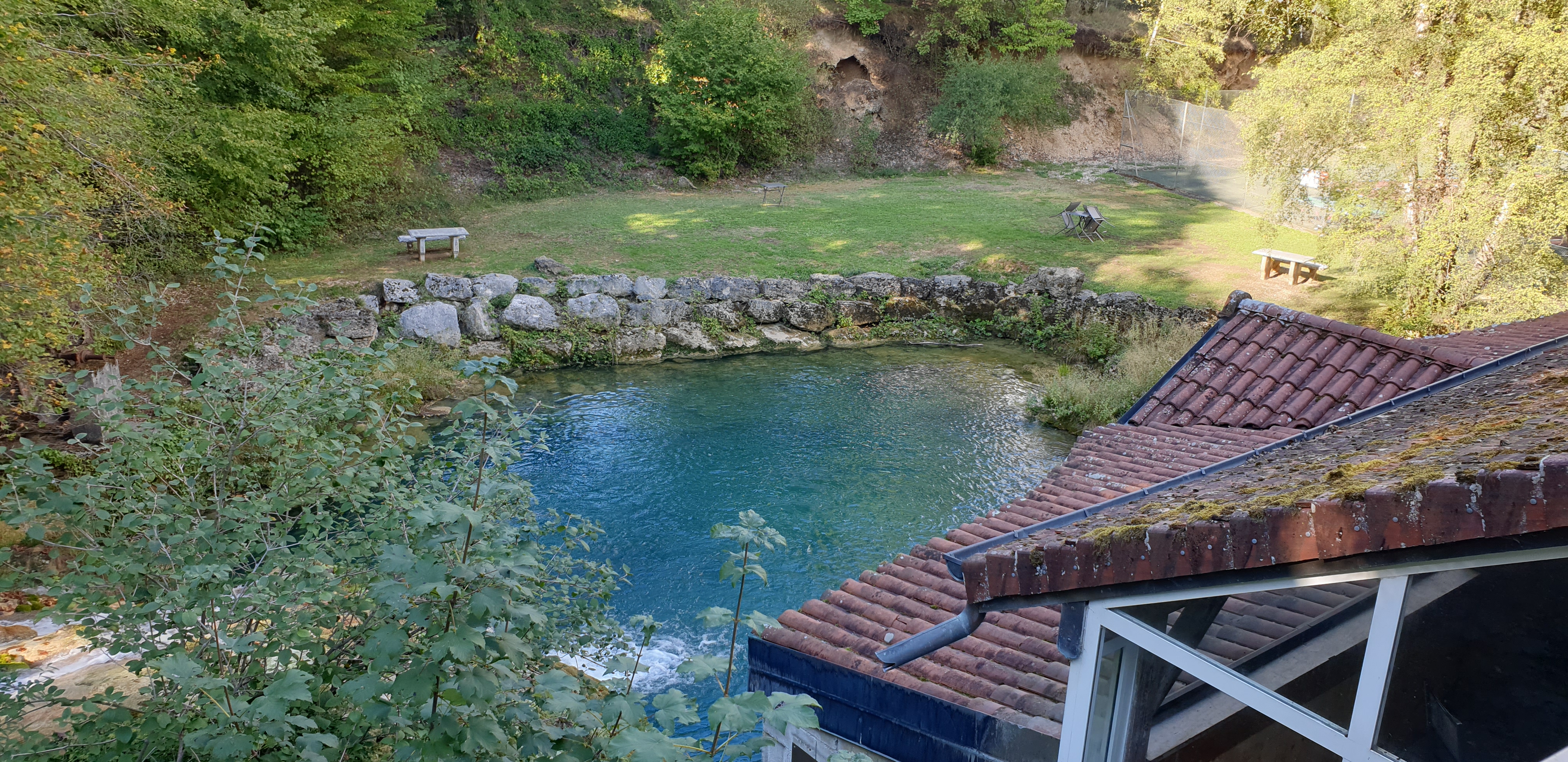 Très bel hôtel à 10 minutes d Arbois , disposant d une piscine et d une cascade naturelle magnifique que l on peut admirer en prenant son petit déjeuner. A 5 minutes à pied des cascades des tuffes