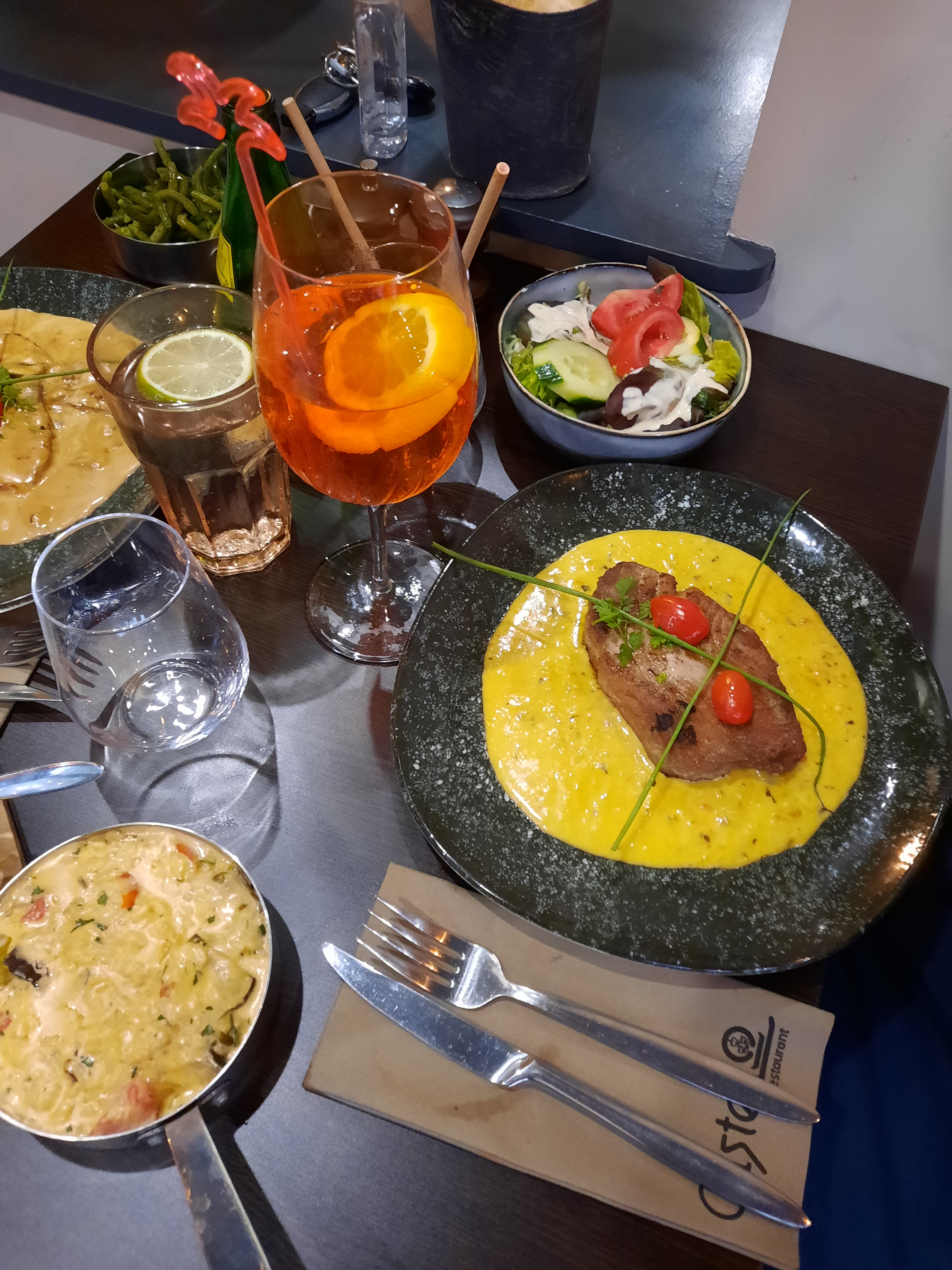 Test de ce restaurant en couple. Le plat de gnocchis sur ardoise était excellent, vin pétillant pour accompagner. Joli décor intérieure! On regrettera le service, on a du s’y reprendre à 3 fois pour commander les desserts… il aurait été appréciable d’annoncer au préalable les ruptures de stocks…tant sur les desserts du jour qu’à la carte!