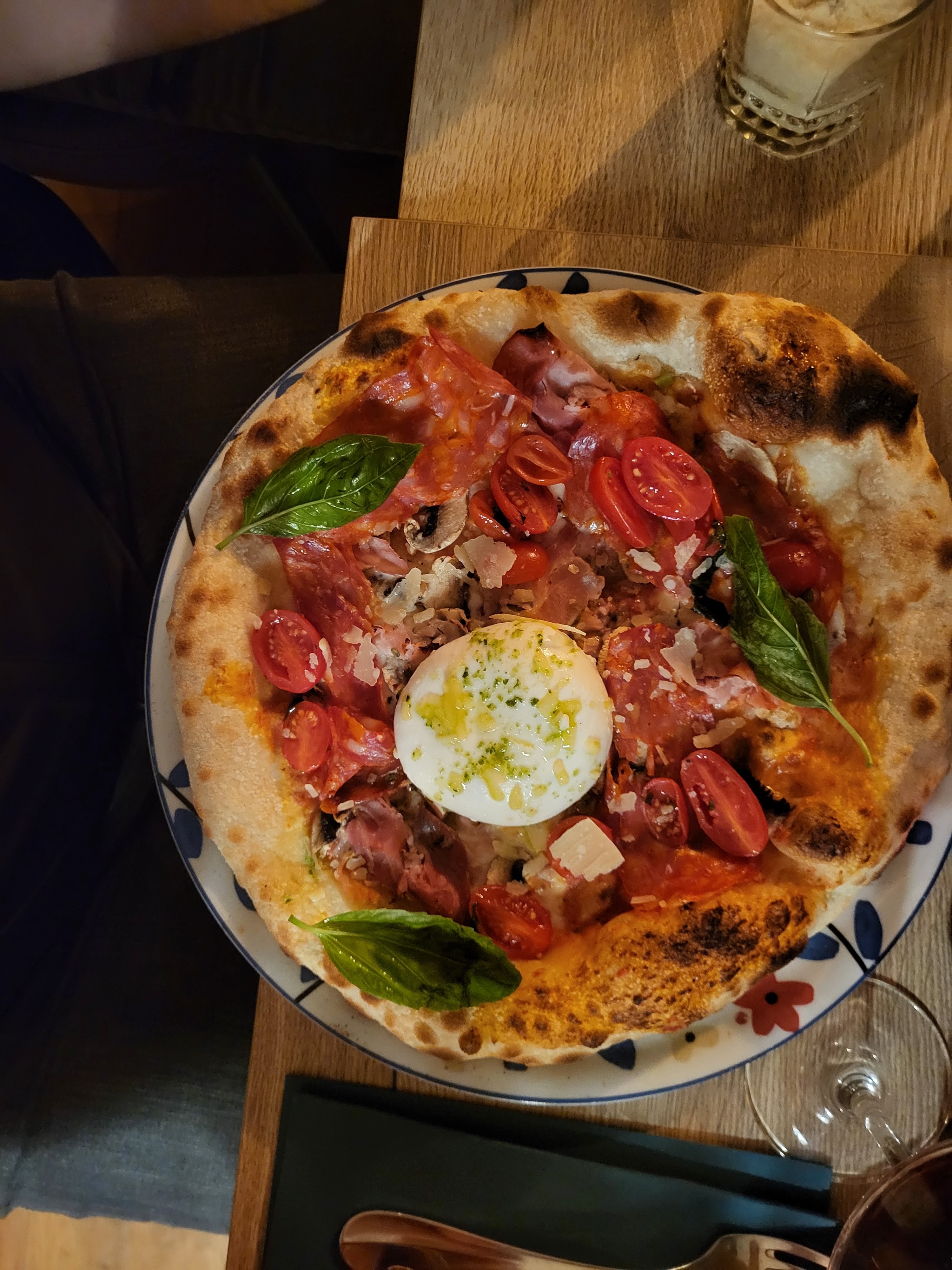 Une pizza et un mi-cuit chocolat avec une crème anglaise à la pistache, le plat et le dessert étaient excellents ! Très bien reçu, une équipe professionnelle et avec le sourire. Et tout cela dans un cadre agréable et très bien décoré. Je recommande les yeux fermés !