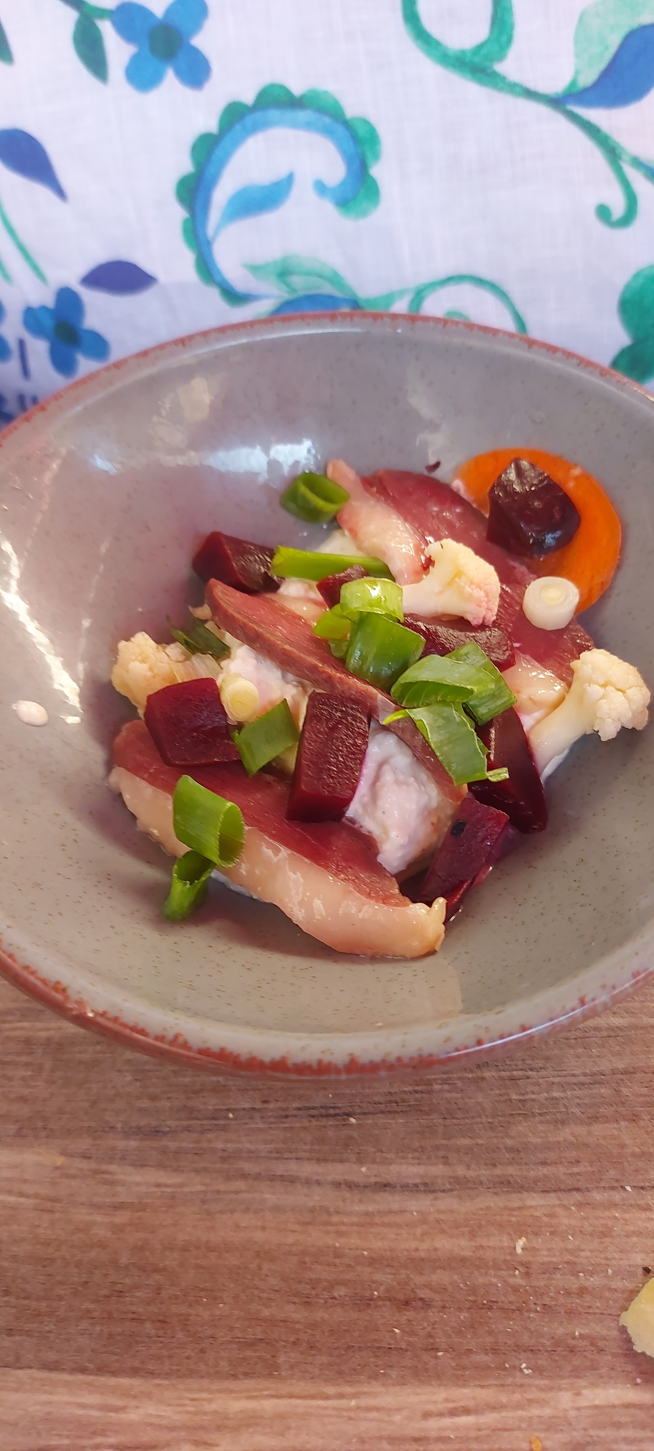 Je voulais y aller depuis longtemps. On a enfin pu retourner au restaurant ce lundi....en terrasse. Bien couverts à l'abri sous un parasol, cela nous a protégés des quelques gouttes. Très bon déjeuner, varié et original. Personnel très sympathique