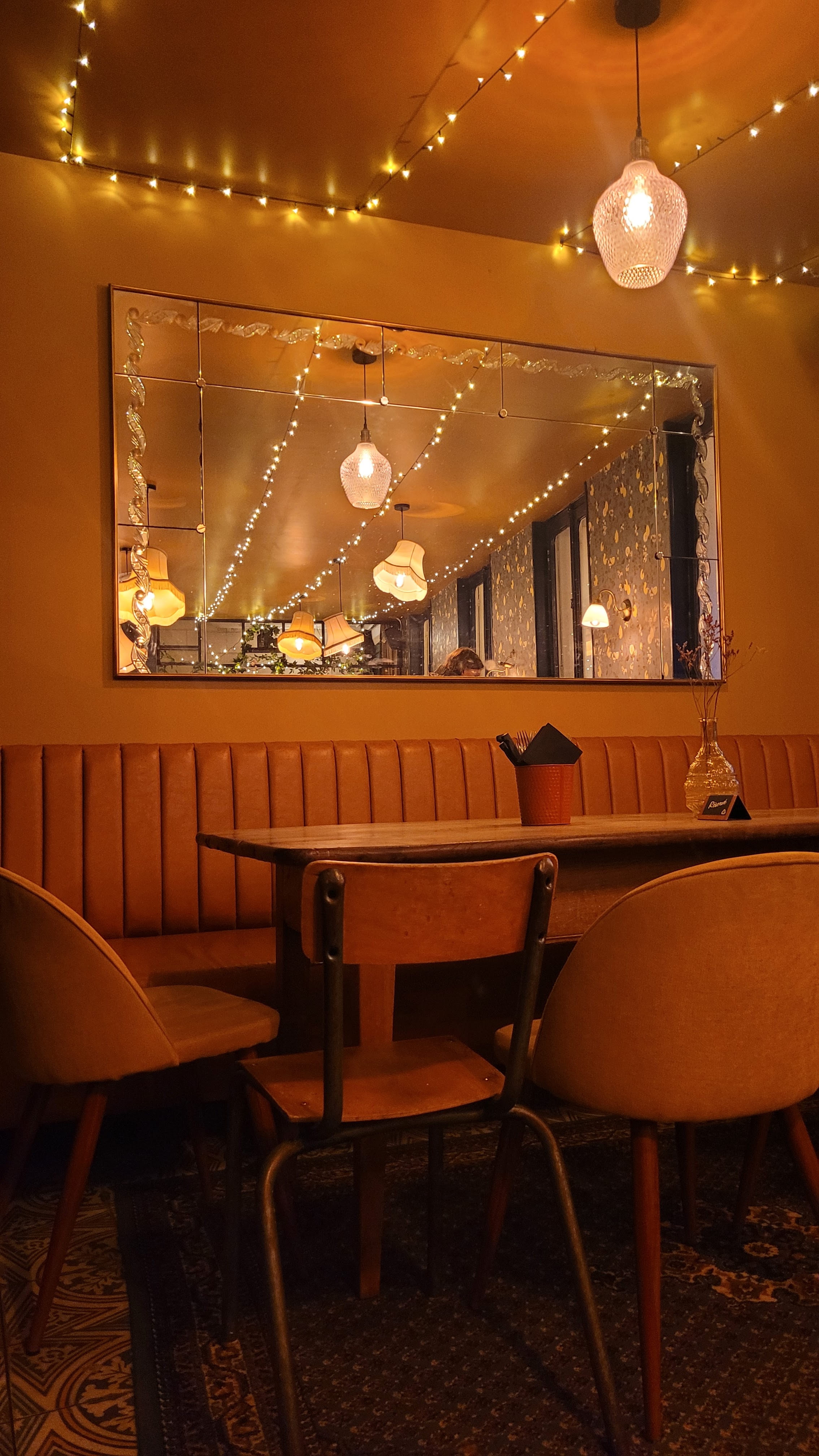 Accueil sympa, musique, plats délicieux, brunch du dimanche cool, déco tout vintage idéale pour une passionnée comme moi !