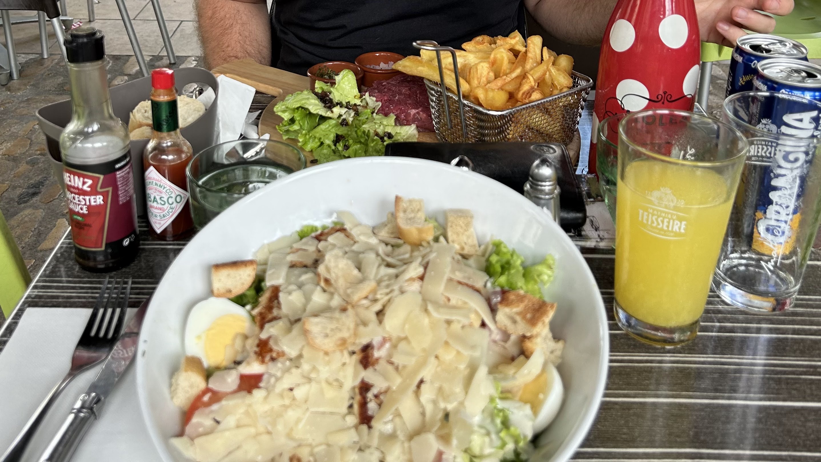 Service ok. Très bon tartare, et très bonne salade Caesar. Endroit chouette sur la place le jeudi avec le marché