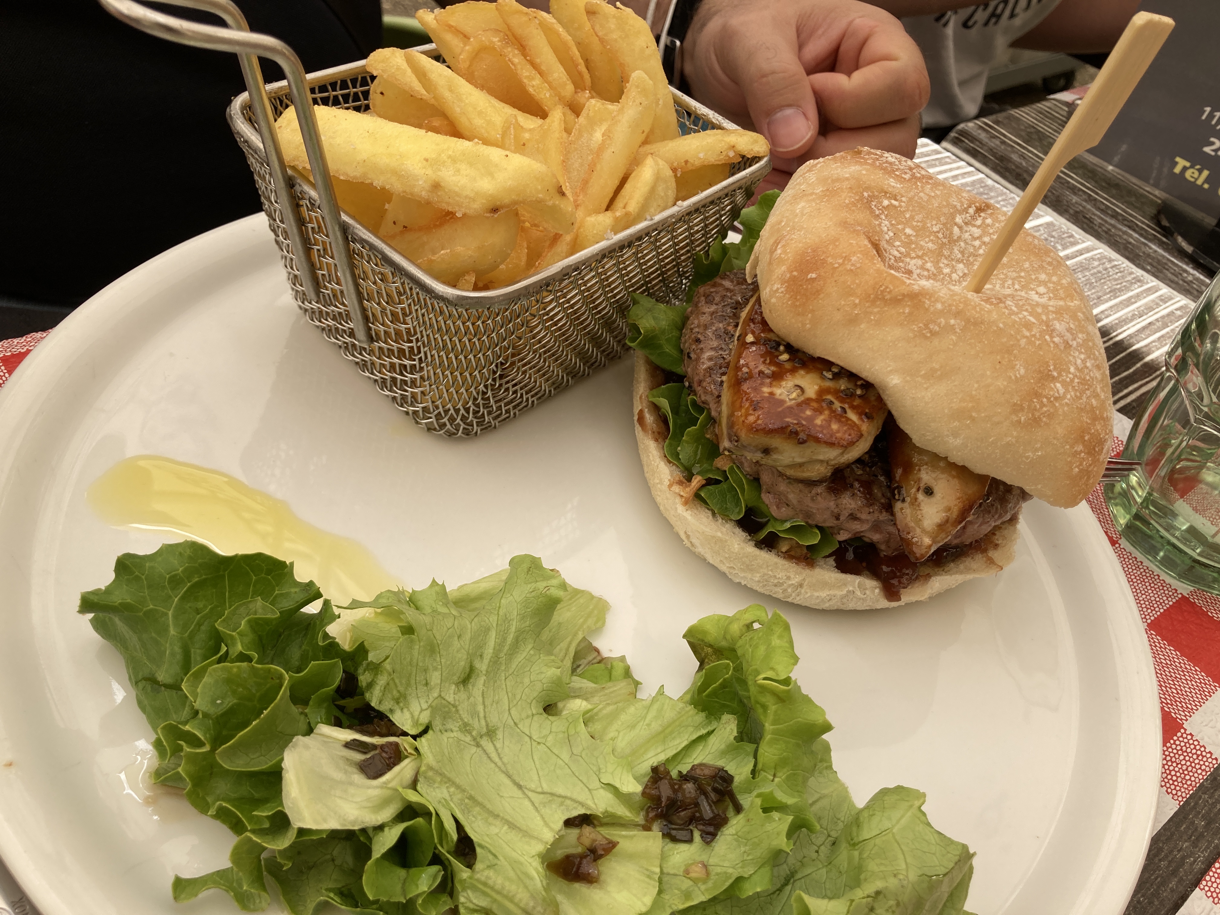 Bon repas malgré la vinaigrette qui était beaucoup trop amer, les burgers accompagnés de leurs panières avec très peu de frites et très peu de salade .. Une serveuse était très agacé que l’on l’interpelle pour nous ramener une bouteille d’eau ..