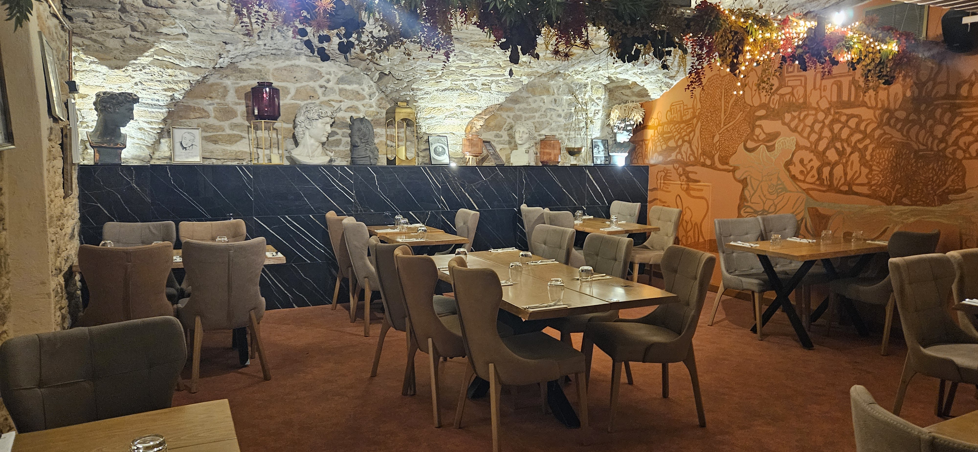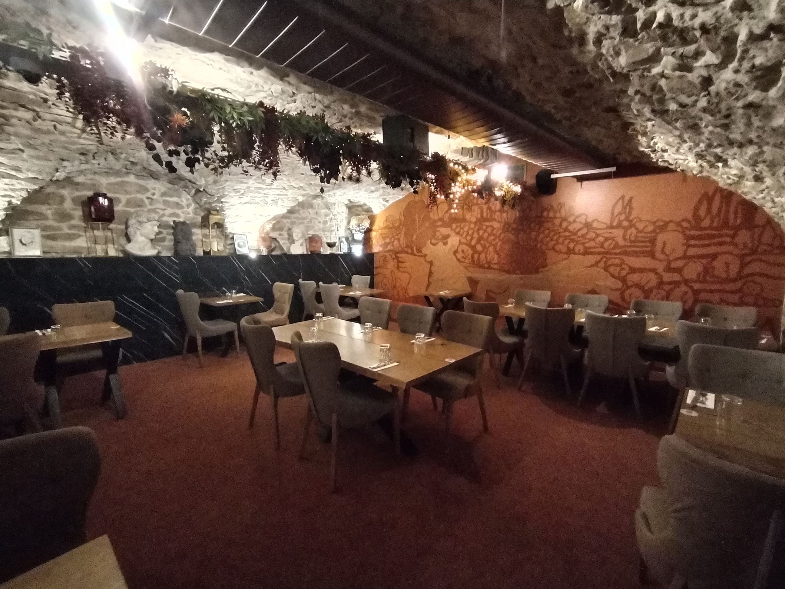 Très beau cadre avec une belle décoration raccord avec les lieux. On passe d'une salle à l'autre avec des espaces en voûtes et un éclairage favorisant une ambiance intimiste. Certaines salles peuvent accueillir des groupes. La cuisine est bonne et les plats variés. Les prix sont corrects. Pour ce qui est du service par contre, c'est un peu désordonné...nous étions un groupe (avec réservation ) et les commandes sont arrivées incomplètes, le serveur perdait patience et le montrait ostensiblement. Plusieurs serveurs différents se sont succédés mais la communication entre eux n'était pas raccord. On nous annonce que des plats commandés ne sont plus disponibles et qu'ils nous faut en choisir d'autres ( ça peut arriver !)...je pense que les serveurs manquaient de formation (le service, ça s'apprend !) Et que, ceux qui sont excédés de servir doivent laisser leur place à ceux qui aiment ce métier...ou les gens tout court. Enfin, lorsqu'on a dû être encaissés, on nous annonce des plats à payer qu'on n'a pas commandé...ils avaient oublié de décompter ceux qu'on n'avait pas pu avoir car en rupture. Ça faisait un peu y en a un qui n'a pas payé ! Pour résumer, bonne cuisine, beau cadre mais service à revoir. Je reviendrai sans doute pour la cuisine et voir comment les choses ont évolué depuis...