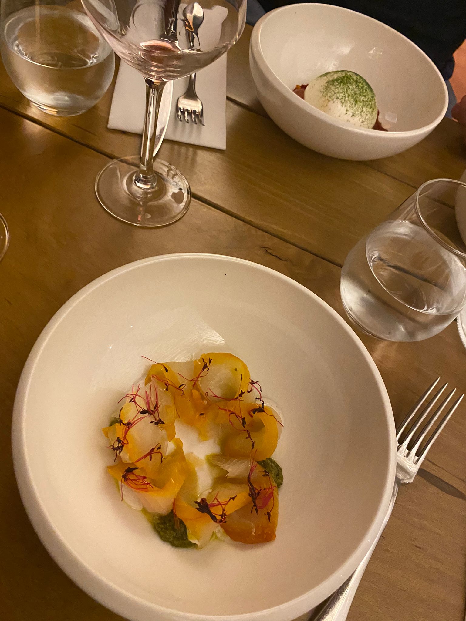 La cuisine était exceptionnelle, présentée avec une élégance remarquable ! L'ambiance et le cadre général du lieu étaient fantastiques.bravo a toute l équipe et surtout le chef. 💫
