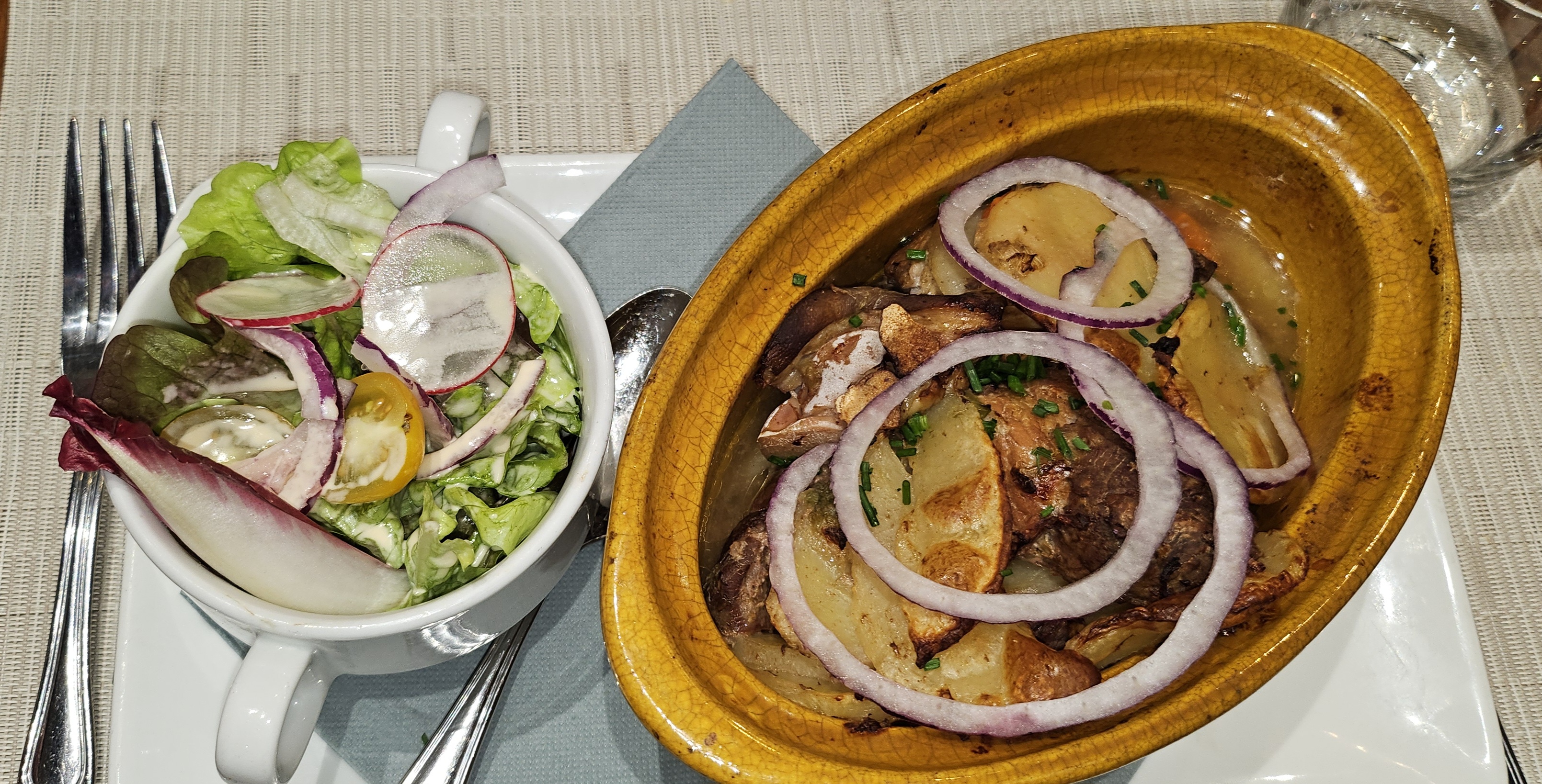 Super foie gras fait maison parfaitement cuit puis un backeoff (poisson pour moi, viande pour monsieur) goûtu et bien garni : nous nous sommes régalés !! Bon rapport qualité/prix, même si l'on peut trouver ailleurs moins cher mais moins bon. Nous recommandons ce restaurant.