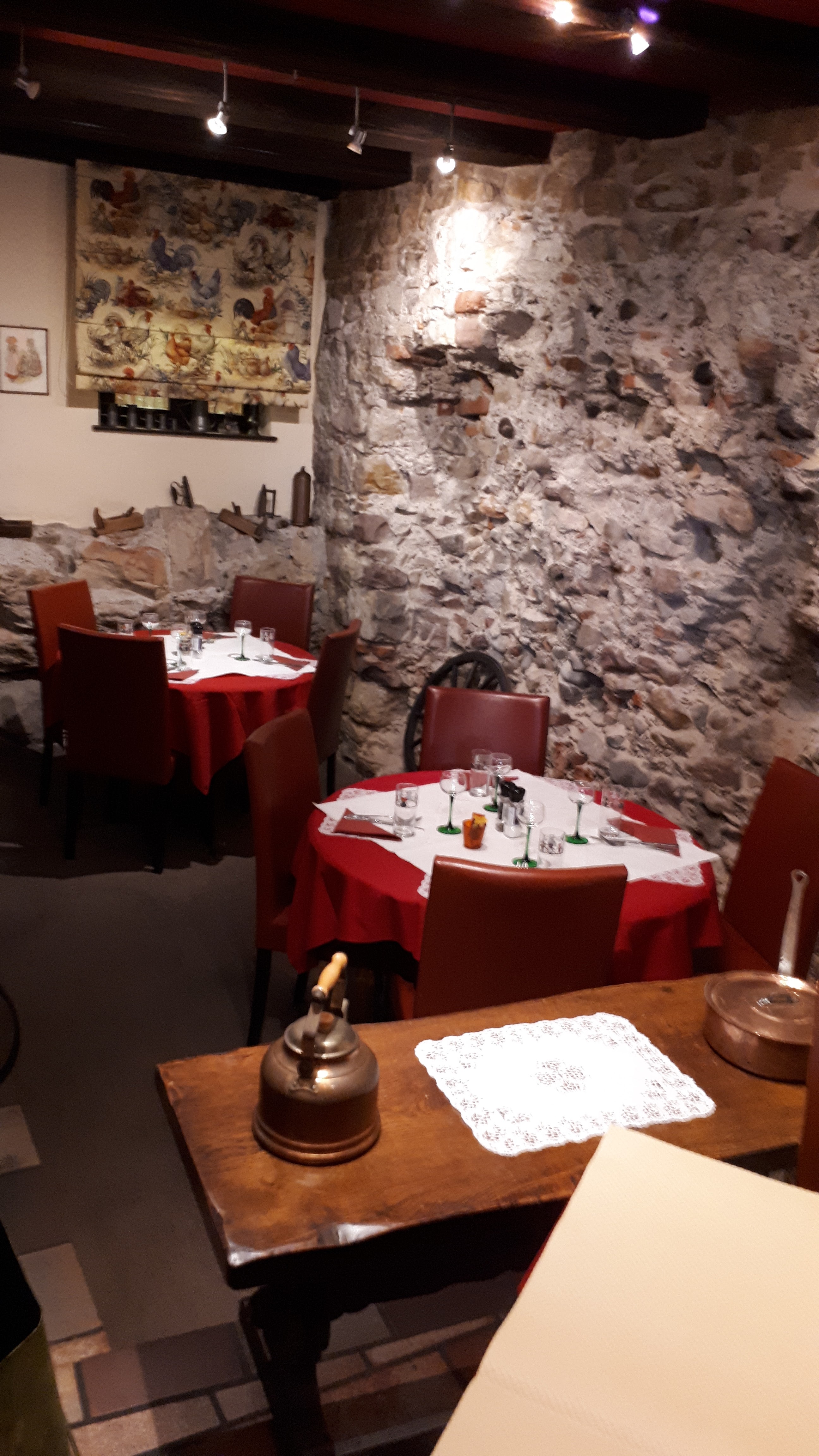 Très beau restaurant avec son intérieur à colombage et son mur de fortification. Les plats traditionnels sont très bons, leurs tartes flambées, lorsqu'il fait chaud, vous remplissent l'estomac, de même que leurs salades. Et que dire des desserts ? Le fondant vous fera fondre de plaisir ❤️ Service agréable et prix raisonnables. Très bonne adresse !