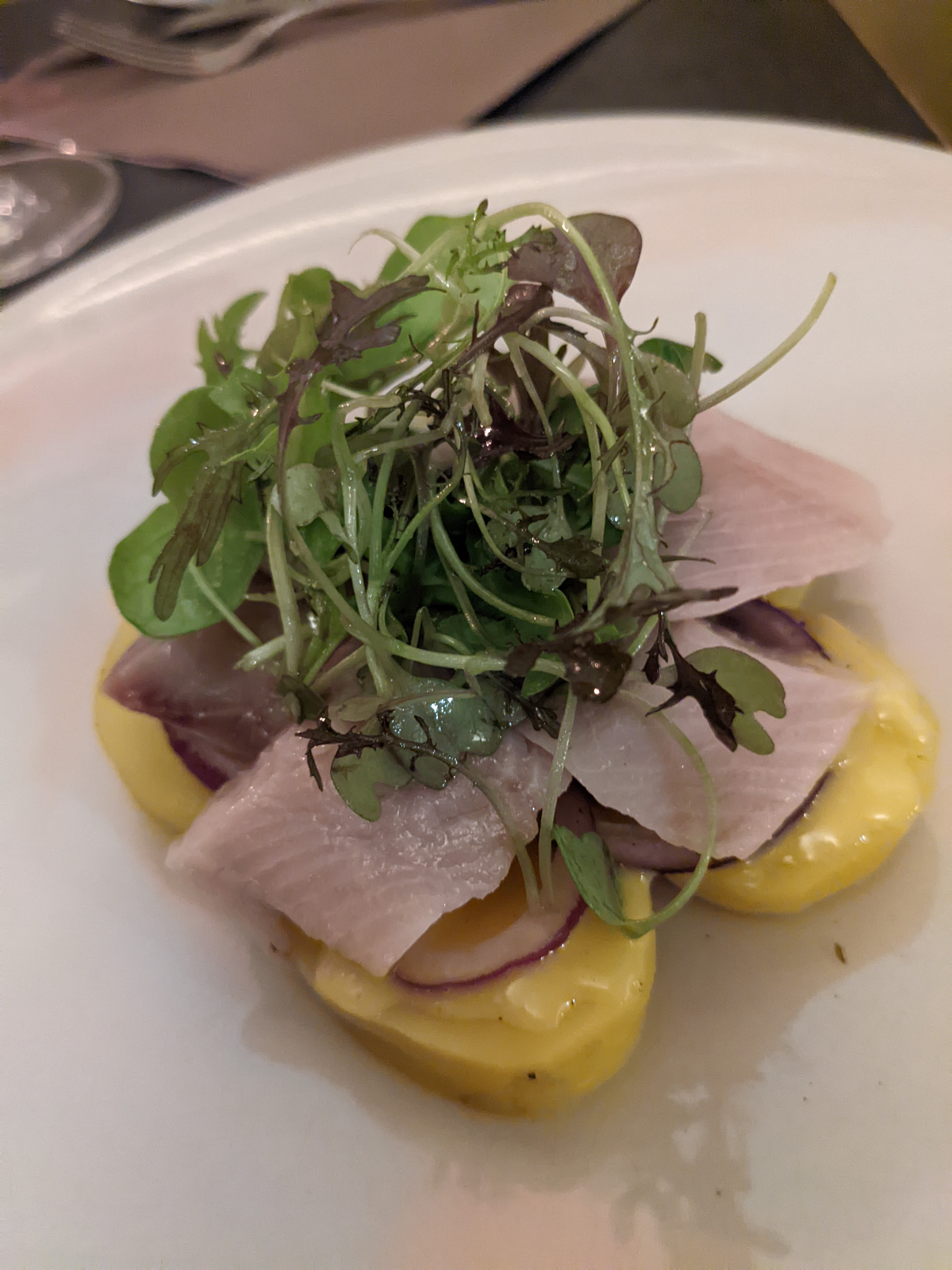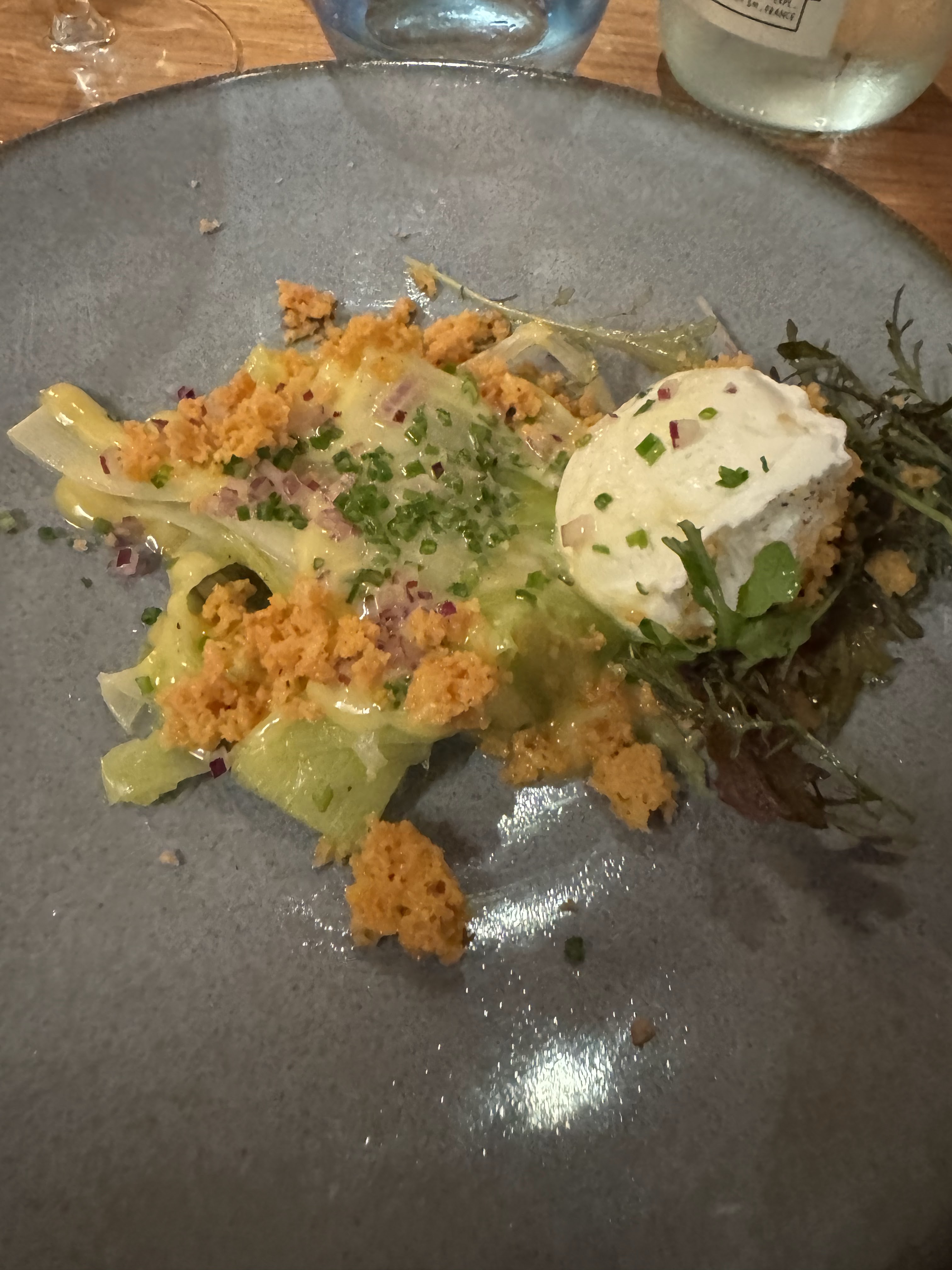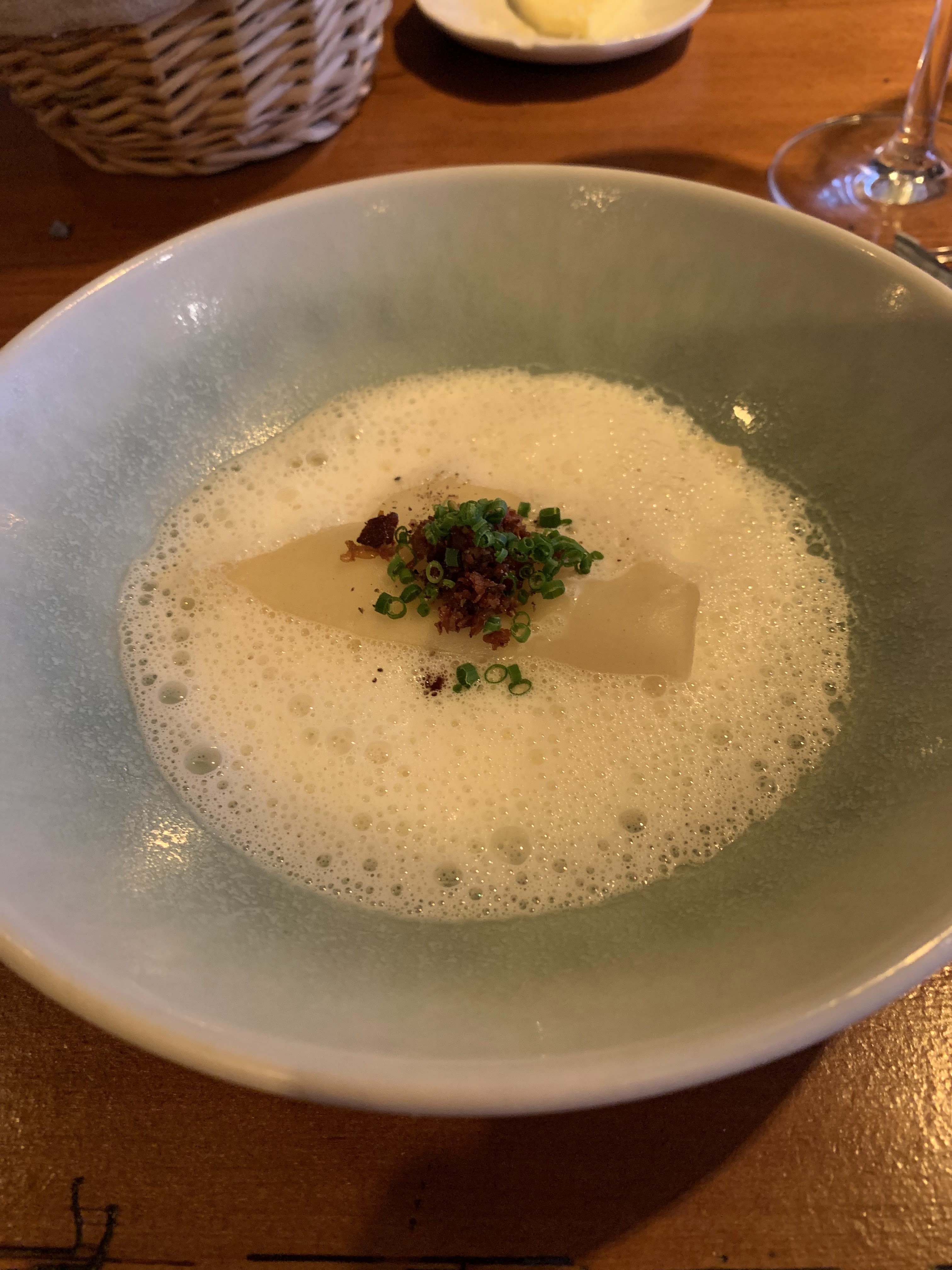 La mousse d'asperges était superbe, mais le plat principal de poulet n'avait rien de spécial. J'étais assis à une grande table commune, ce dont j'aimais l'idée, mais personne n'était intéressé à parler, même si c'était le but.🥲
