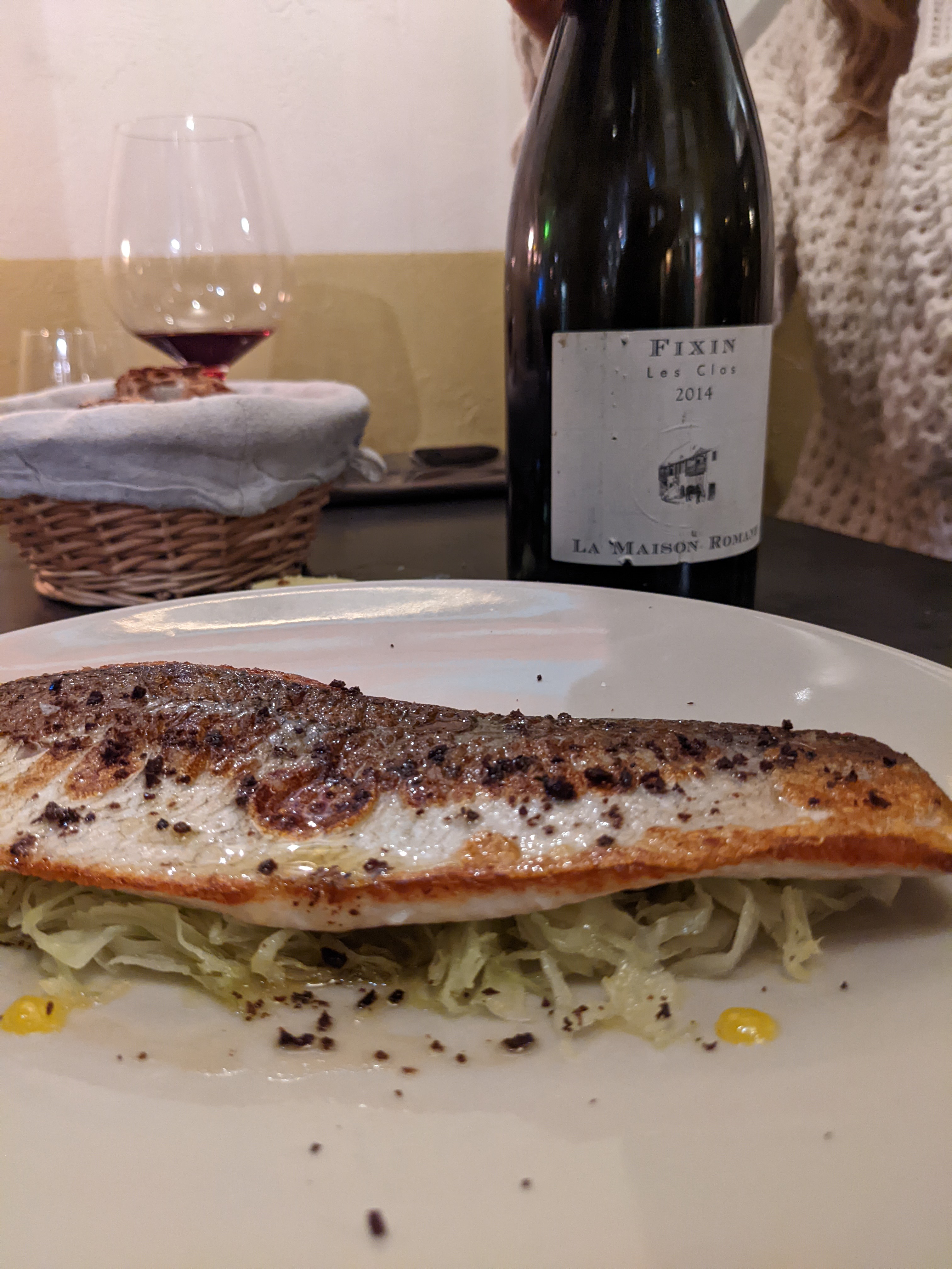 Parfait, rien a dire. J’ai prix 1 soupe et le poisson pour plat. Savigny 2017 pour accompagnement.