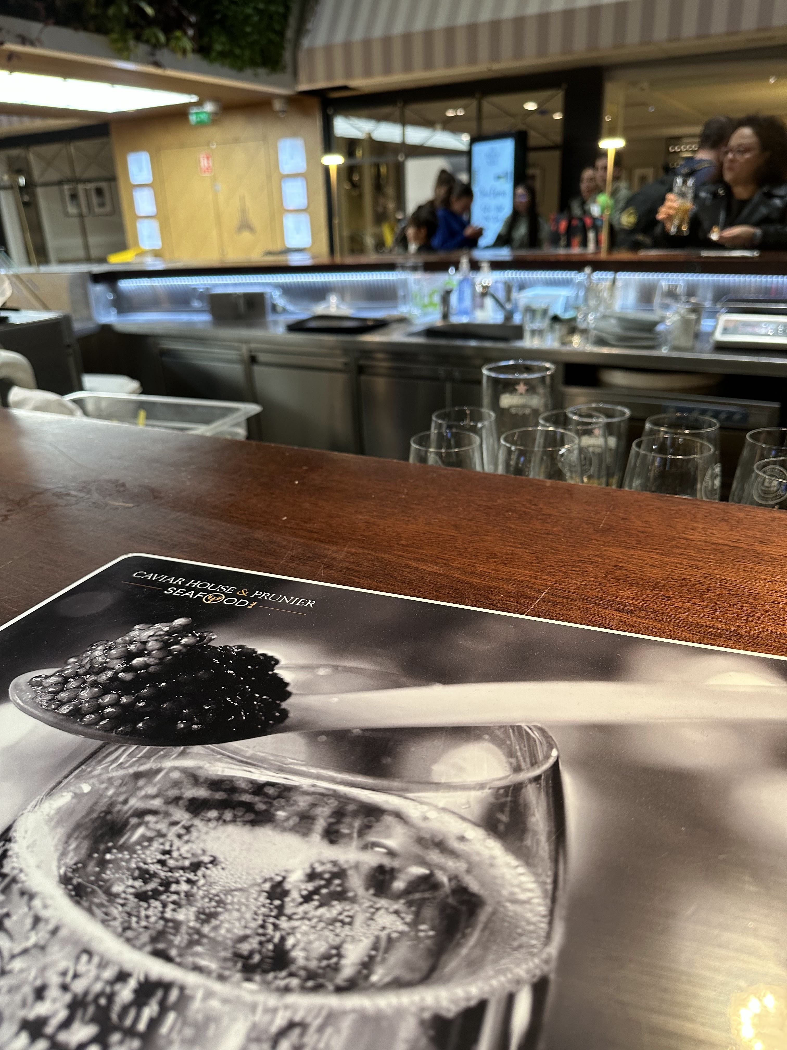 Bel endroit à l'intérieur de l'aéroport pour les fruits de mer. J'ai mangé du caviar pour la première fois, ce qui était bon mais je ne sais pas si ça vaut les 30 euros dépensés pour la petite quantité.