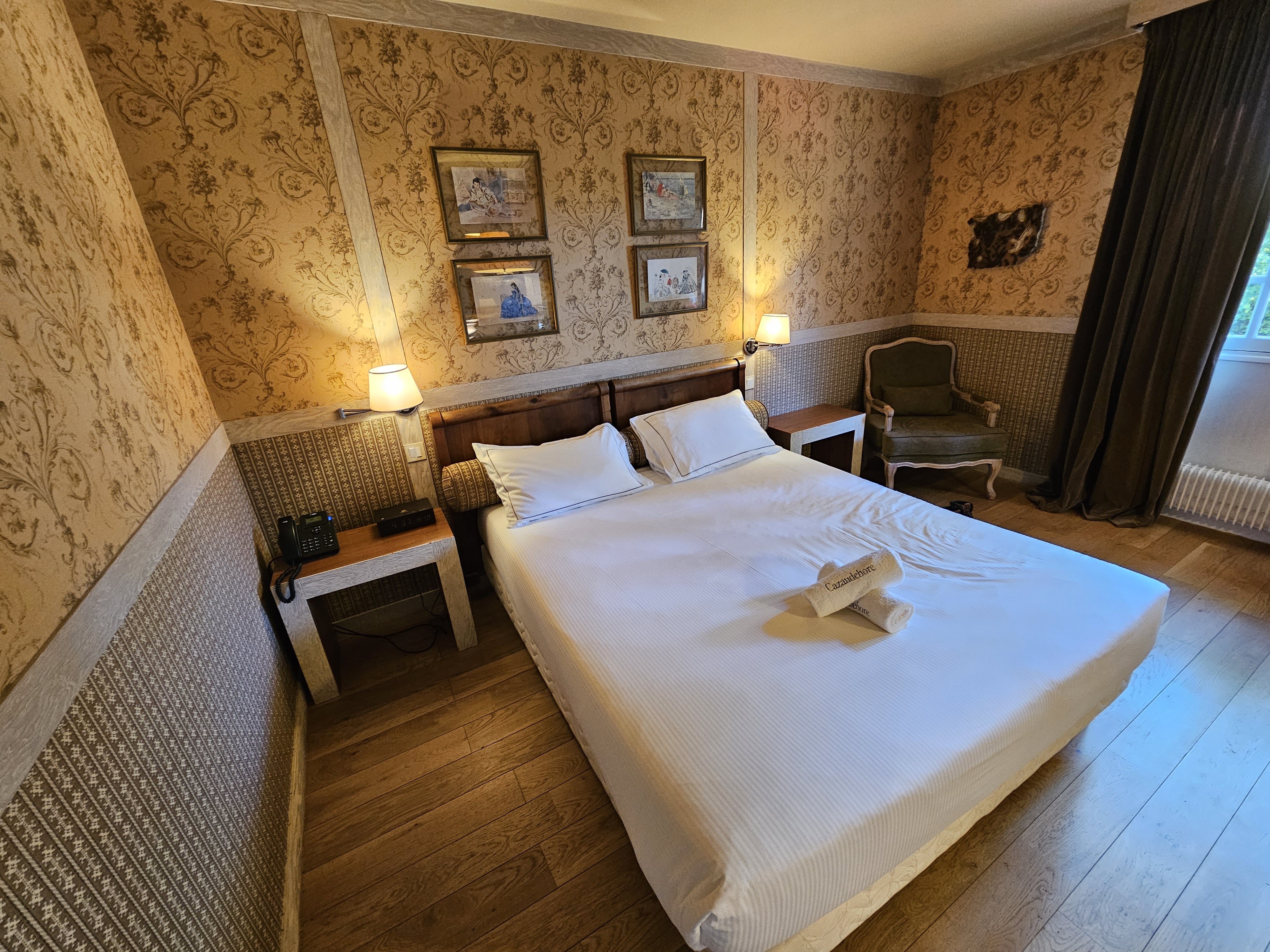 L'hôtel est à refaire et ne devrait pas être classé dans les Relais&Châteaux! Sanitaires vétustes, salle de bain datant des années 70, literie très mauvaise, décoration ayant au moins 15 ans! Le prix est exhorbitant face à de tels équipements