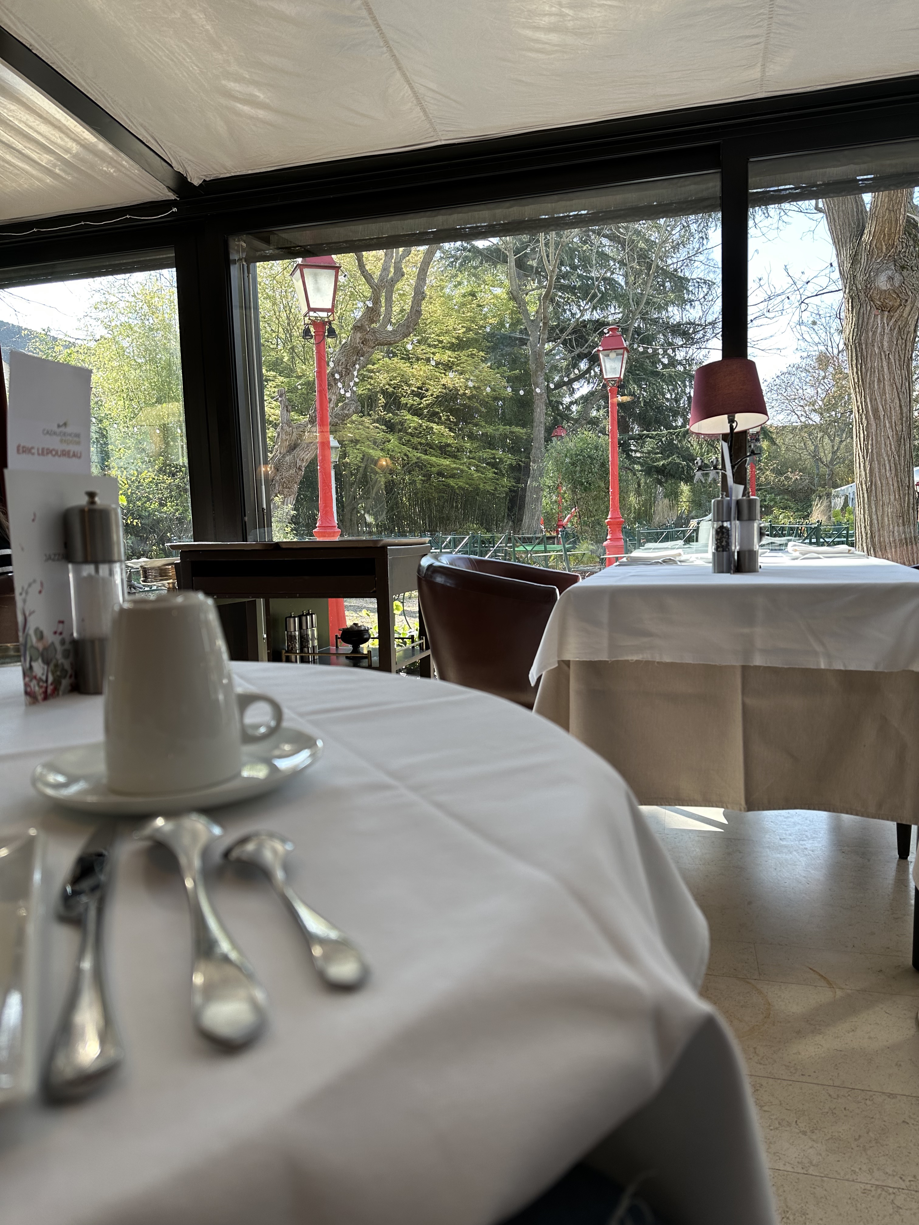 C'est un endroit où il faut aller en été pour profiter du jardin magnifique au milieu de la forêt, mais c'est quand même bien cher pour ce que c'est. Les plats sont plutôt bons mais pas transcendants et ils ne justifient pas les sommes déboursées. Surtout quand nous y sommes allés le service n'était vraiment pas à la hauteur. Incompétents et peu aimables (voire impolis pour certains) les serveurs ont accumulé les faux-pas sans que la situation soit reprise en main par un maître d'hôtel qui de toute évidence n'était pas là, ou était dépassé par le manque de professionnalisme de son personnel. Reste le cadre, heureusement.