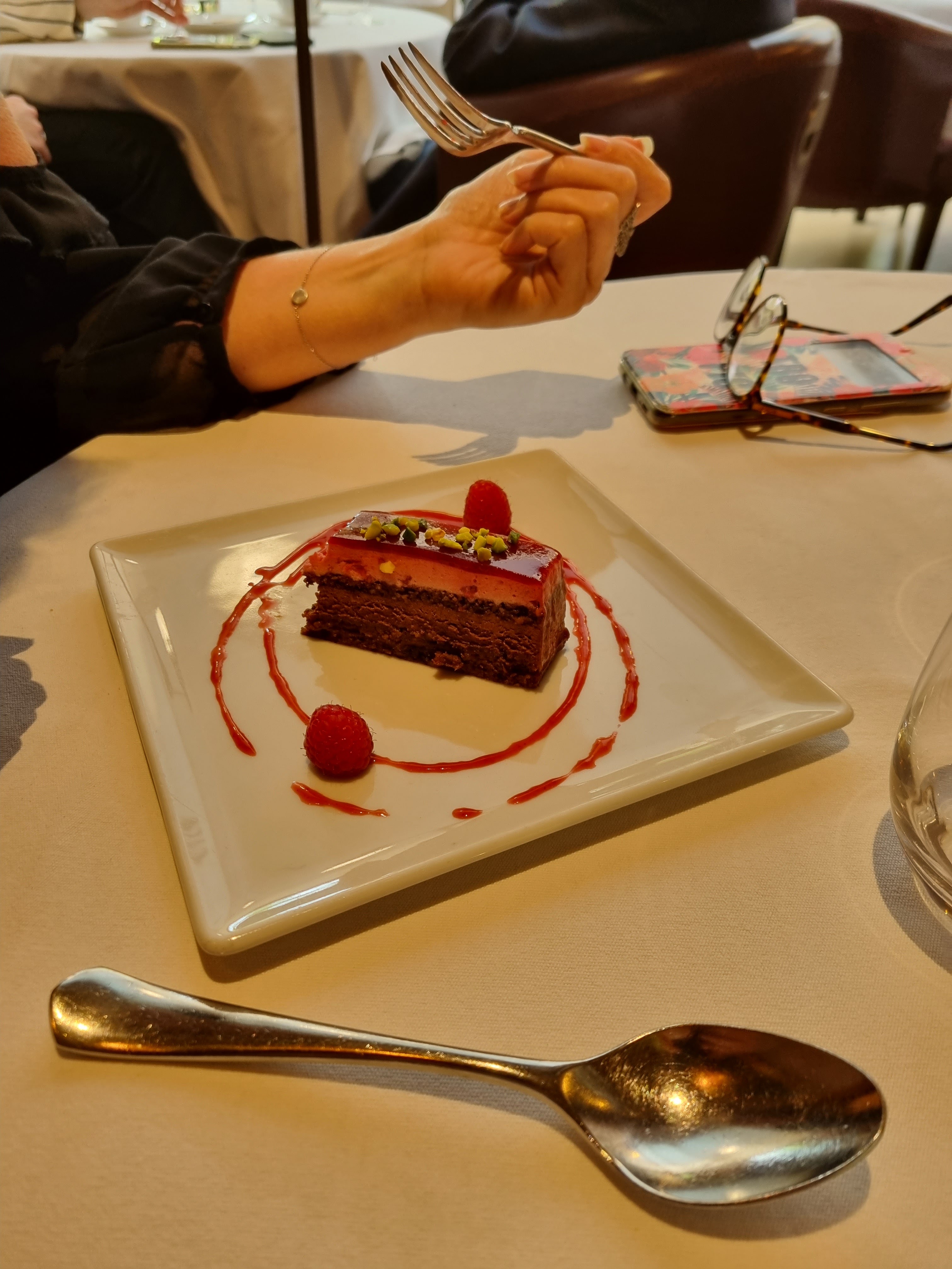 Délicieux. Le cadre est magnifique, le personnel aux petits soins pour passer un moment inoubliable. Mention spéciale pour le sommelier qui m'a éblouie avec sa maîtrise de son art.