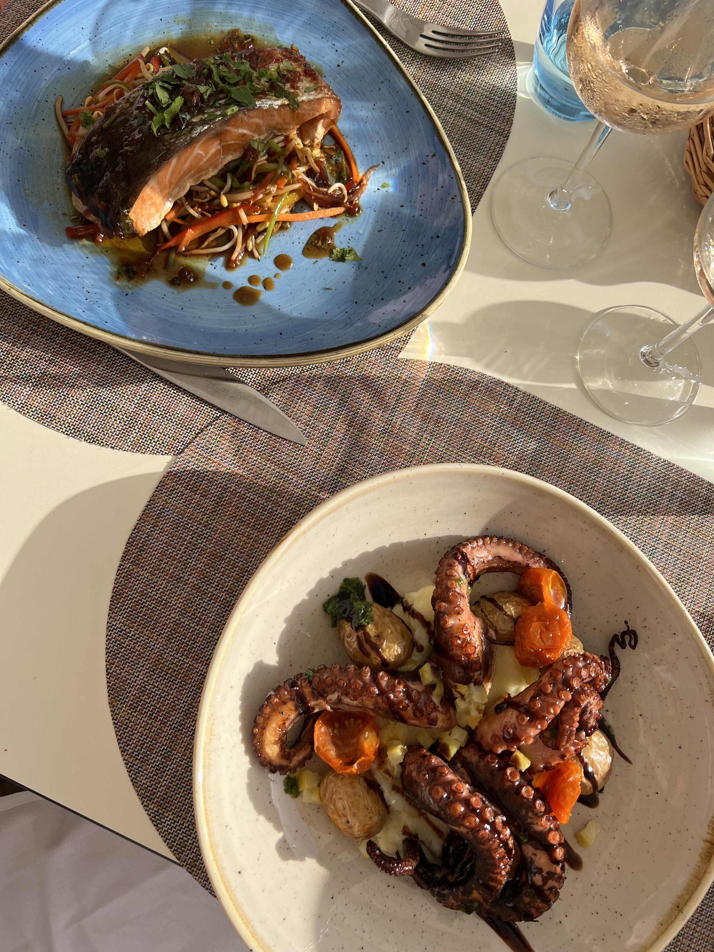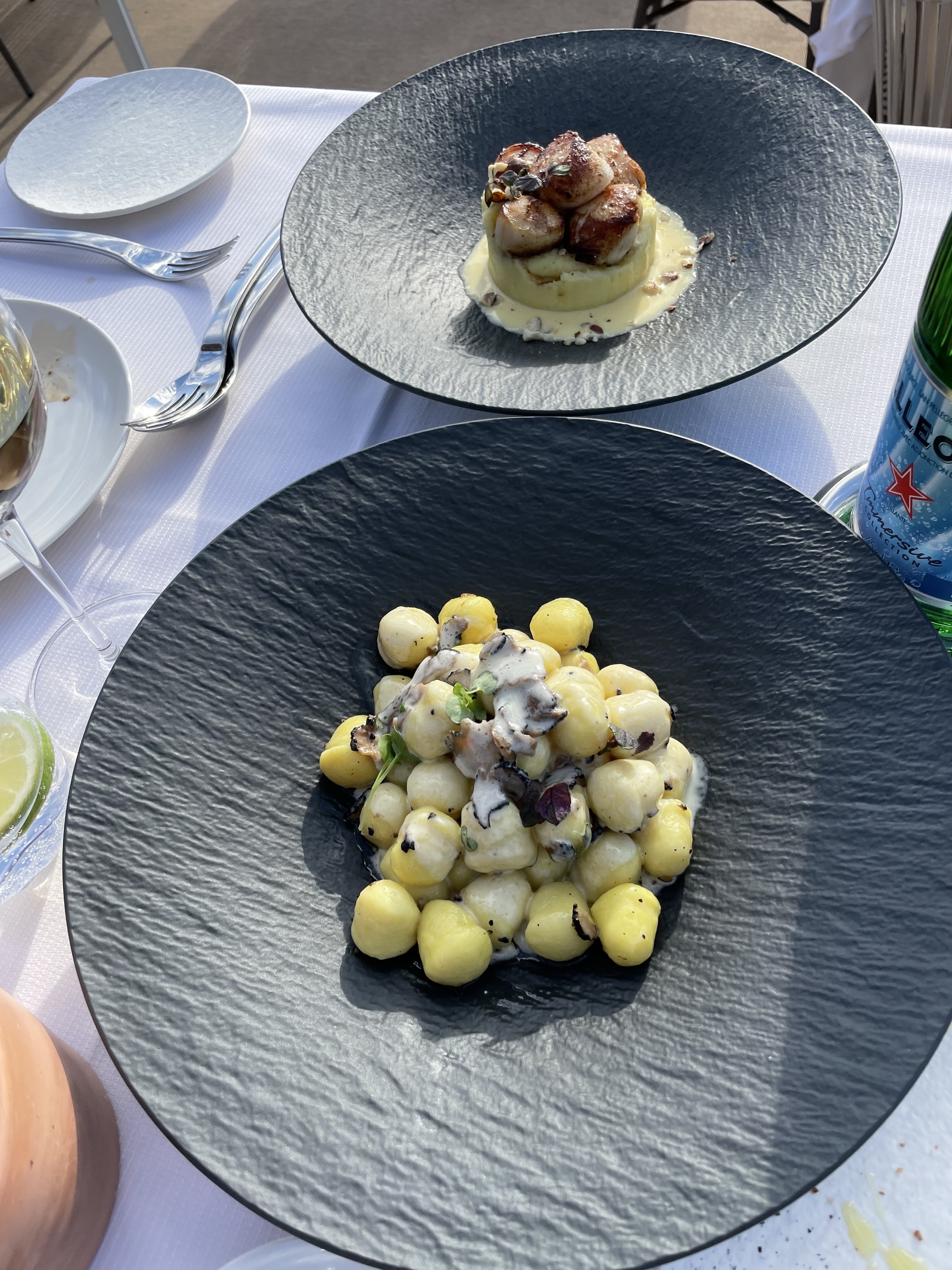 Nous sommes arrivés à notre hôtel un peu tôt, nous avons donc décidé de déposer nos bagages et de chercher un endroit pour déjeuner. Nous avons trouvé CBeach et avons décidé d'y entrer car la vue était incroyable. Nous avons été accueillis immédiatement et nous sommes assis. Nous avons commandé dans leur menu d'hiver, la burrata aux figues, les gnocchis à la truffe et les pétoncles à la purée de pommes de terre. Tout était savoureux et parfaitement cuit. Le service était également rapide et poli ! Nous reviendrons