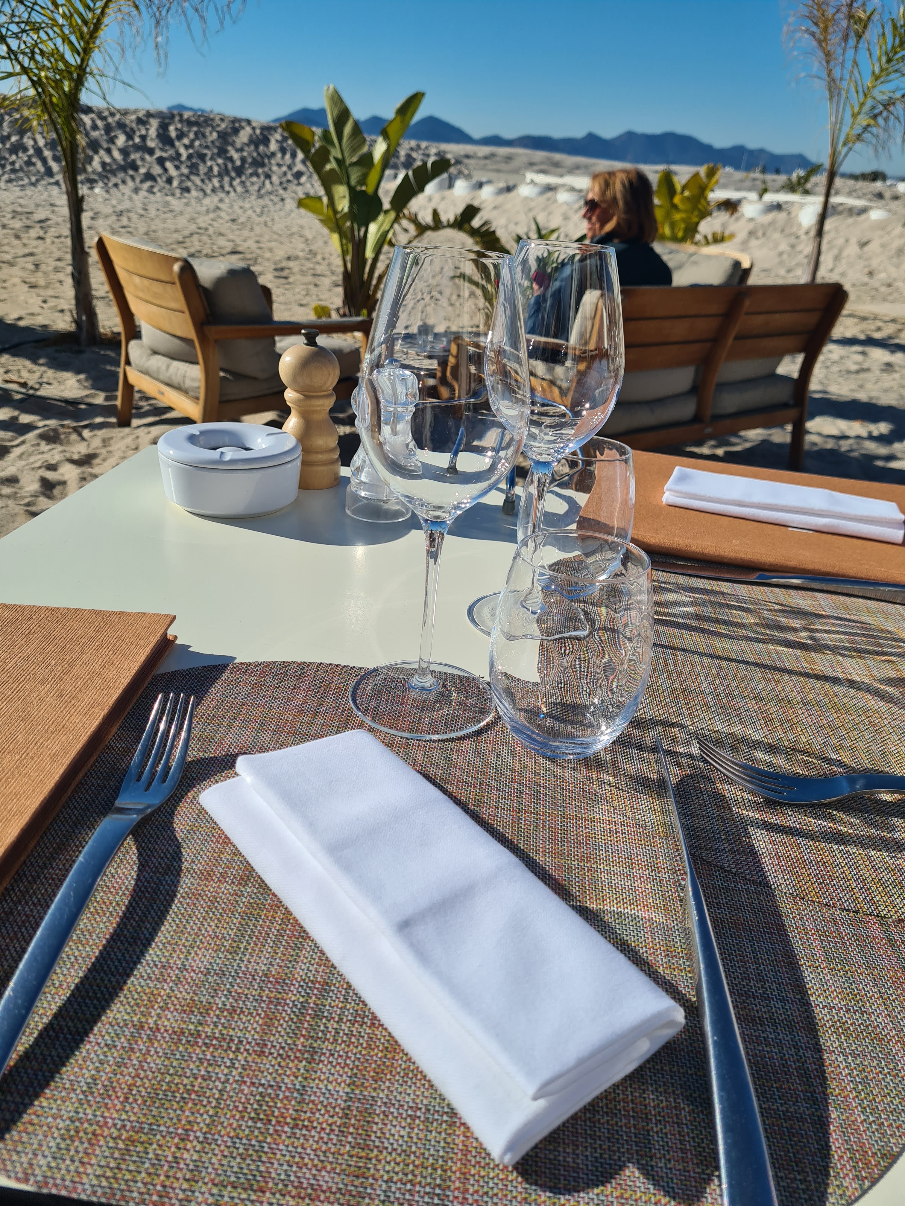 Repas sur terrasse en bois tout contre la plage ou sur un tapis sur le sable. Très confortable. Musique d'ambiance discrète. Excellent service et plats de qualité. Port du masque très bien respecté par les serveurs. Juste un regret pour le baba au rhum car il n'a été servis qu'avec une mini-ampoule de rhum, de plus très dilué.