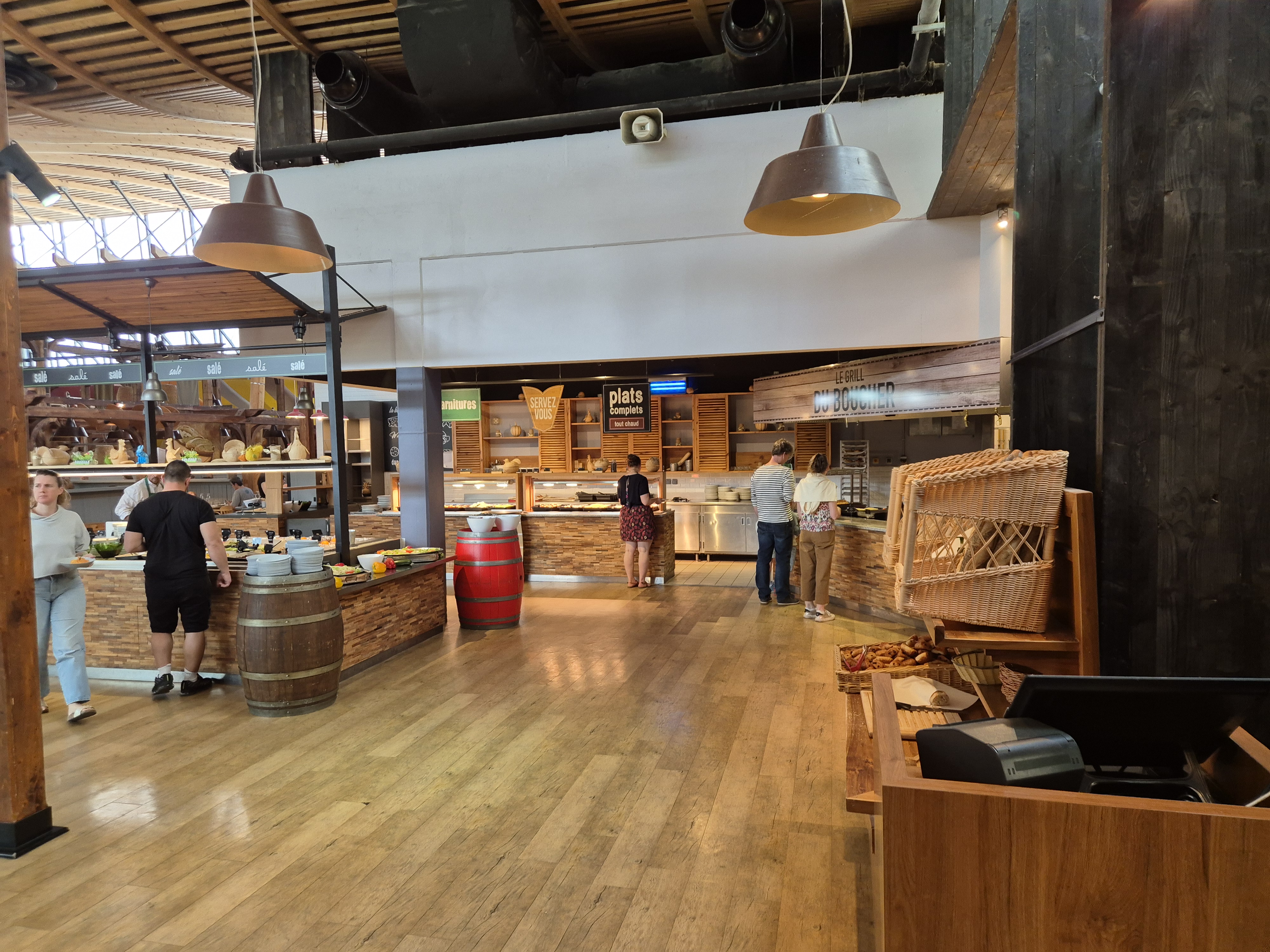 Le point qui fait les crêpes et gaufres ferment à 20h et des 18h30 plus de crêpes ni gaufre car ils arrêtent les machines dans ce cas affichaient une fermeture a 18h30 ça évitera de décevoir les enfants!!! Et en plus quand vous commandez une crêpe il m’a que la moitié des ingrédients indiqué dessus et à 19h le personnel plie les tables et les chaises, on se sent de trop!!!