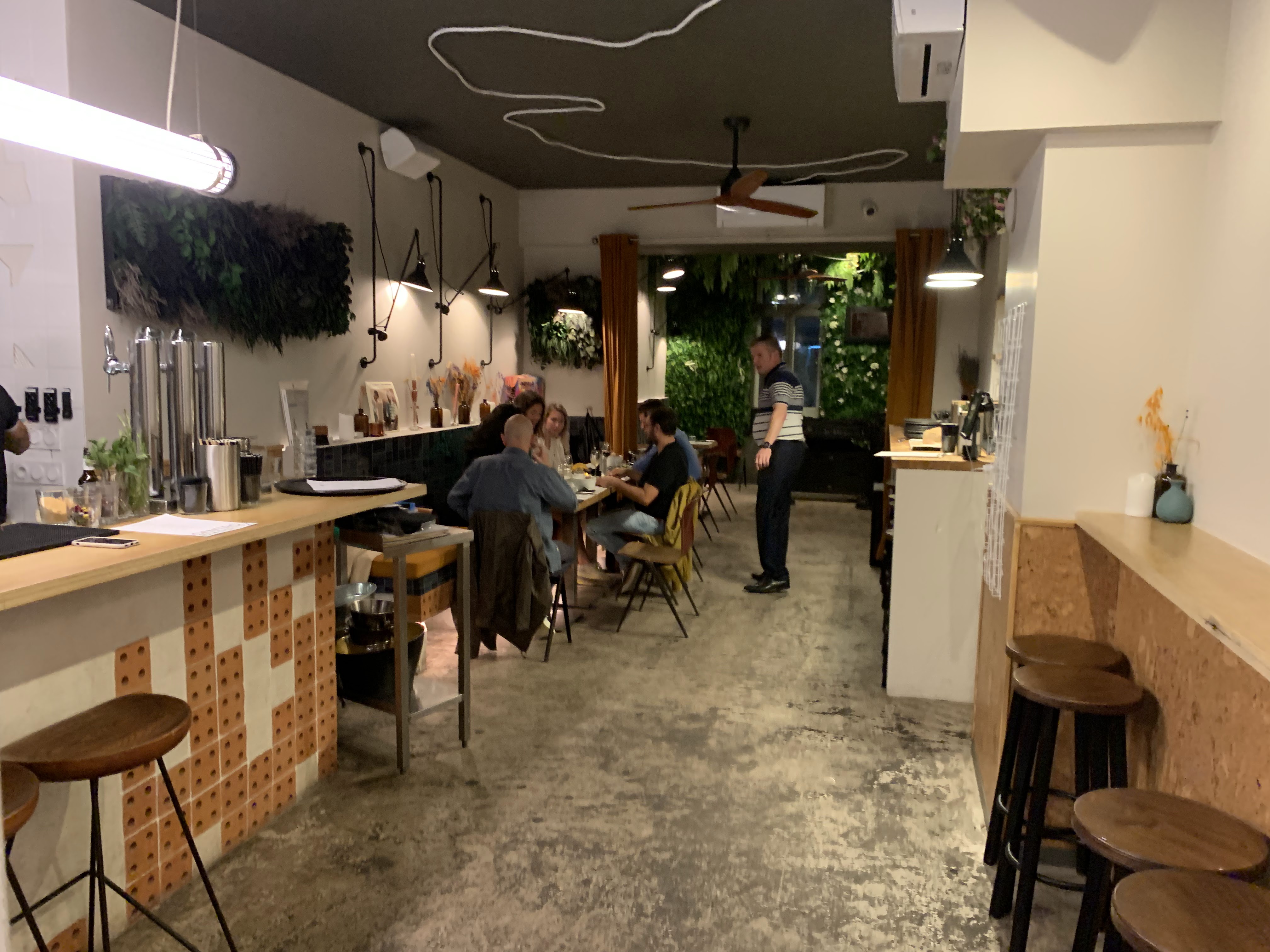 Lieu épatant tant par sa décoration innovante alliant chic et le brut industriel , tant par une équipe souriante et accueillante. Mention spéciale pour le bar à la braise accompagné d’haricots verts sautés au wok : succulents ! Ambiance festive mais un coin restaurant propice aux discussions.On peut donc y dîner tranquillement et faire la fête après. Parfait nous reviendrons très vite !