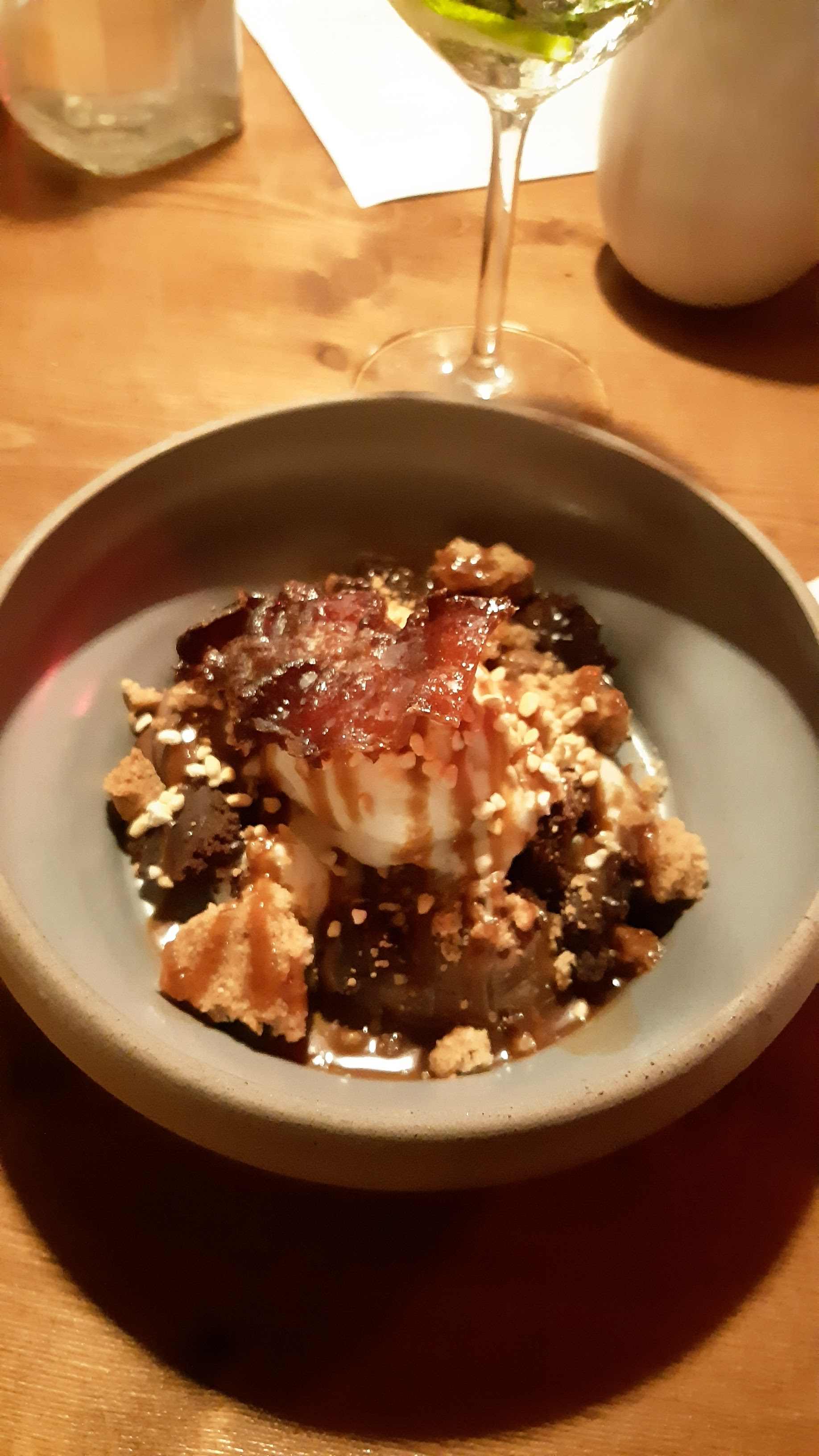 En général, ne laissez pas de commentaires, mais cet endroit en mérite un. Absolument fantastique. Chaque plat commandé était délicieux, véritablement l'un de mes plats préférés cette année jusqu'à présent, et d'un excellent rapport qualité-prix. Recommandation personnelle, même si les deux desserts commandés étaient excellents, je ne commanderais pas en même temps la profiterole banoffee et le brownie au bacon car c'était un peu trop riche (nous partagions). Leçon pour la prochaine fois ! (je pencherais pour le brownie au bacon 😉👌🏾)