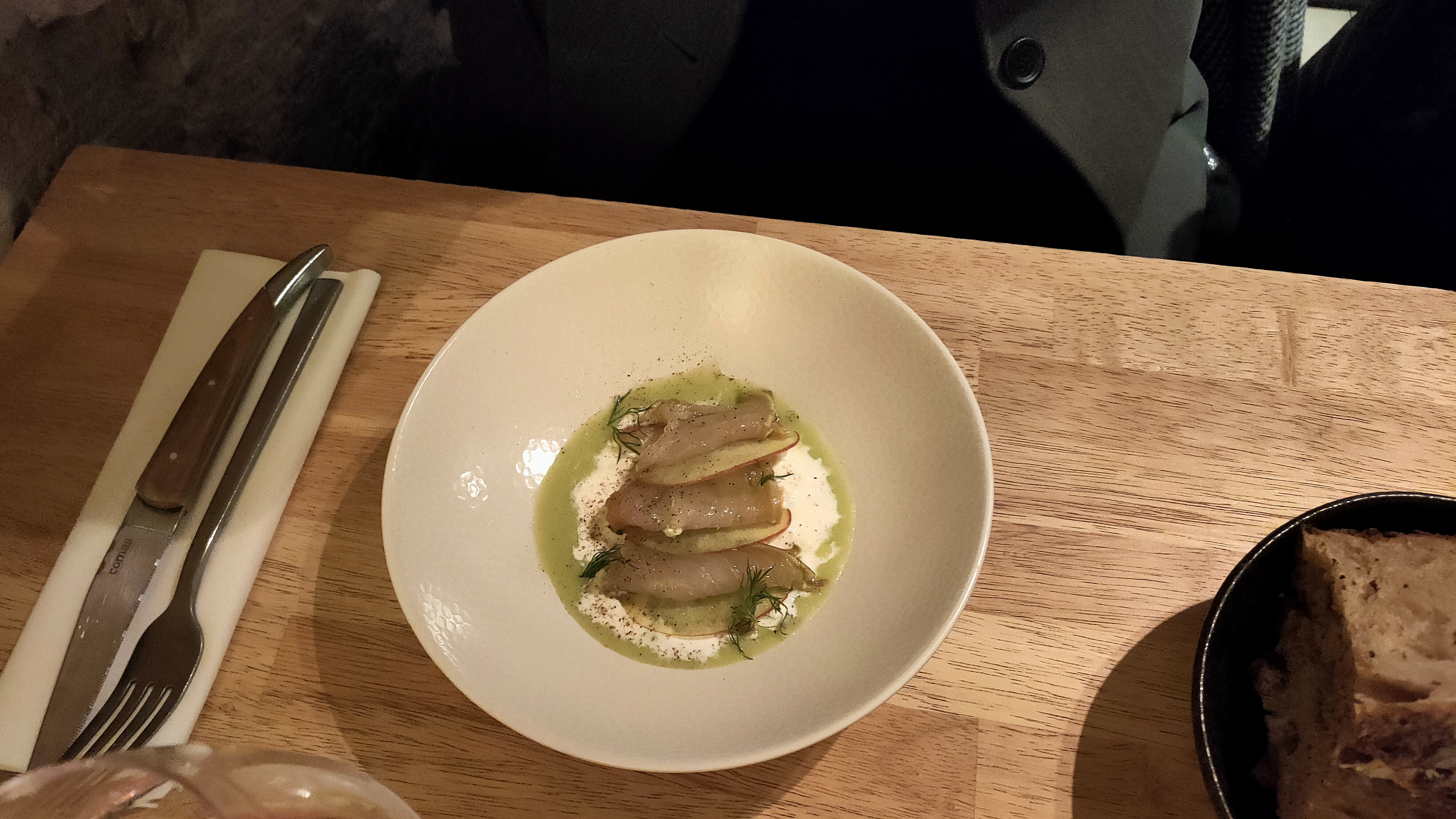 Le restaurant est petit, le serveur était en short, les torchons salles trainaient à côté du bar. Pour le prix et le standing puisque côté au Michelin et Gault et Millau 2021, on s'attendait à un waouh dans les assiettes qu'on a pas eu. 38€ entrée plat dessert. Dessert à 10€ sans plus. Je pense que j'ai même eu quelques petits morceaux de coques de noix ou noisettes qui étaient désagréable sous la dent. Le plat était bon, rien à redire là dessus. Le vin était bon.