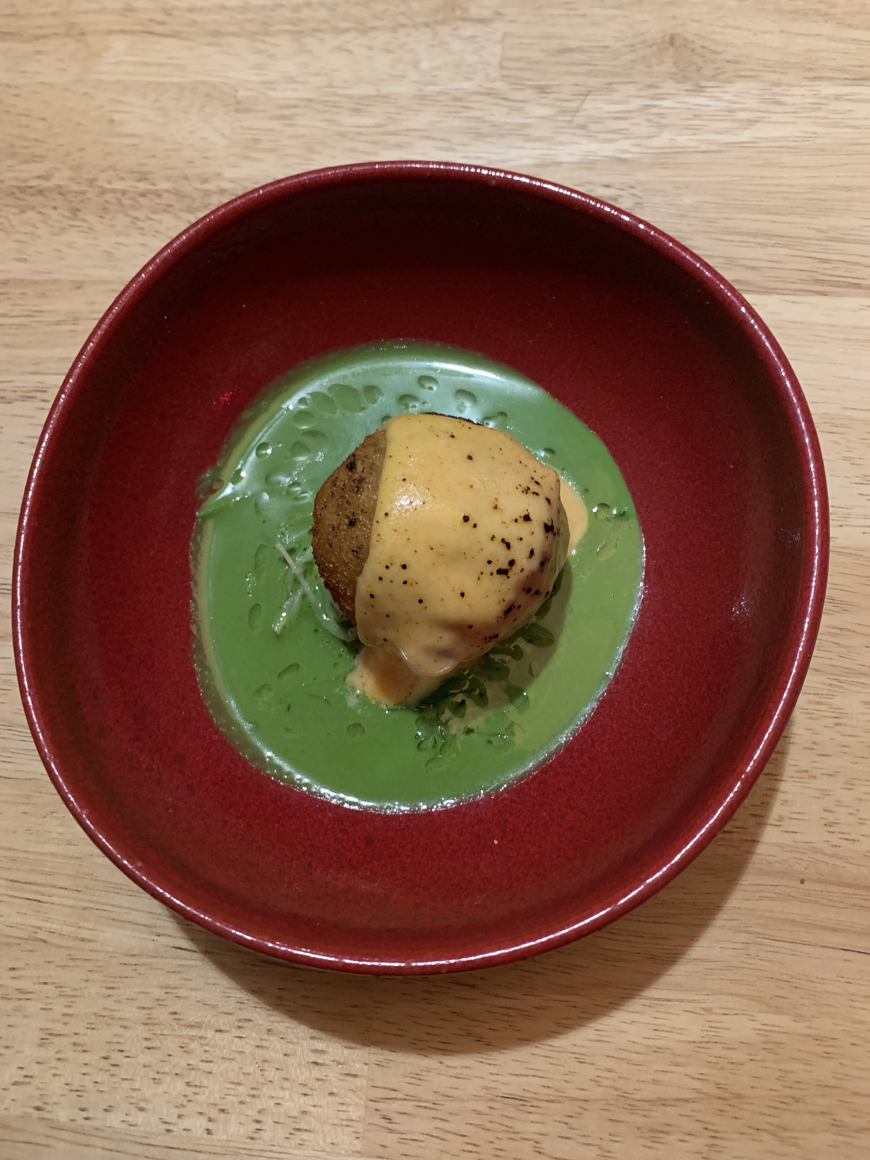 Personnel gentil. Beau menu, préparé avec beaucoup de soin. Pleine de saveurs. Le financier aux pêches était magnifique. Une petite chose tellement sexy et délicieuse🤌🏽✨