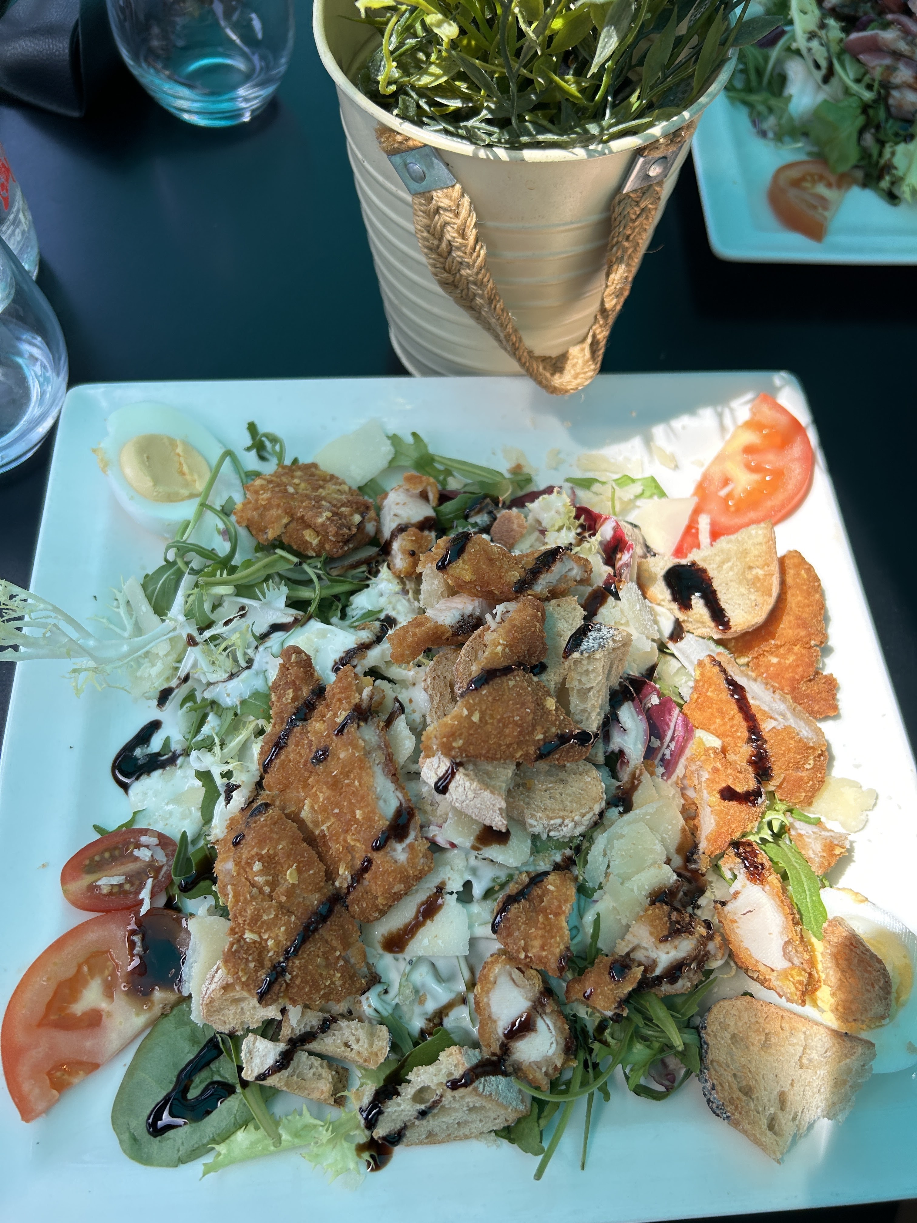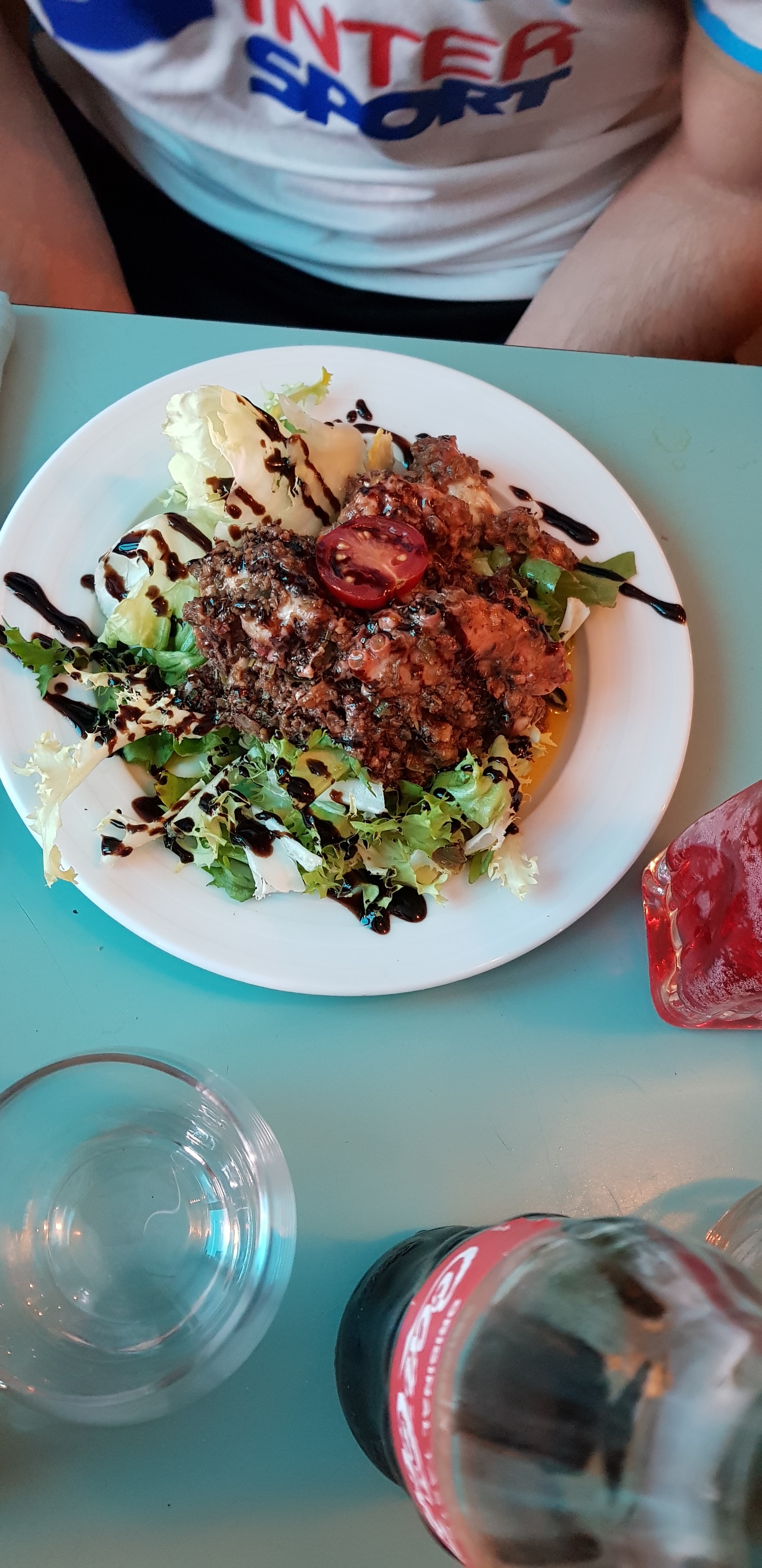 Arnaque pour touristes que nous sommes... soit disant que tout est fait maison, publicité mensongère ! La panure du poulet dans la salade César est industrielle, la sauce en trop grande quantité ce qui noie la salade qui devient toute molle et sans goût. Amabilité du personnel à revoir et sourire manquant. Meme pas en haute saison et déjà stressé