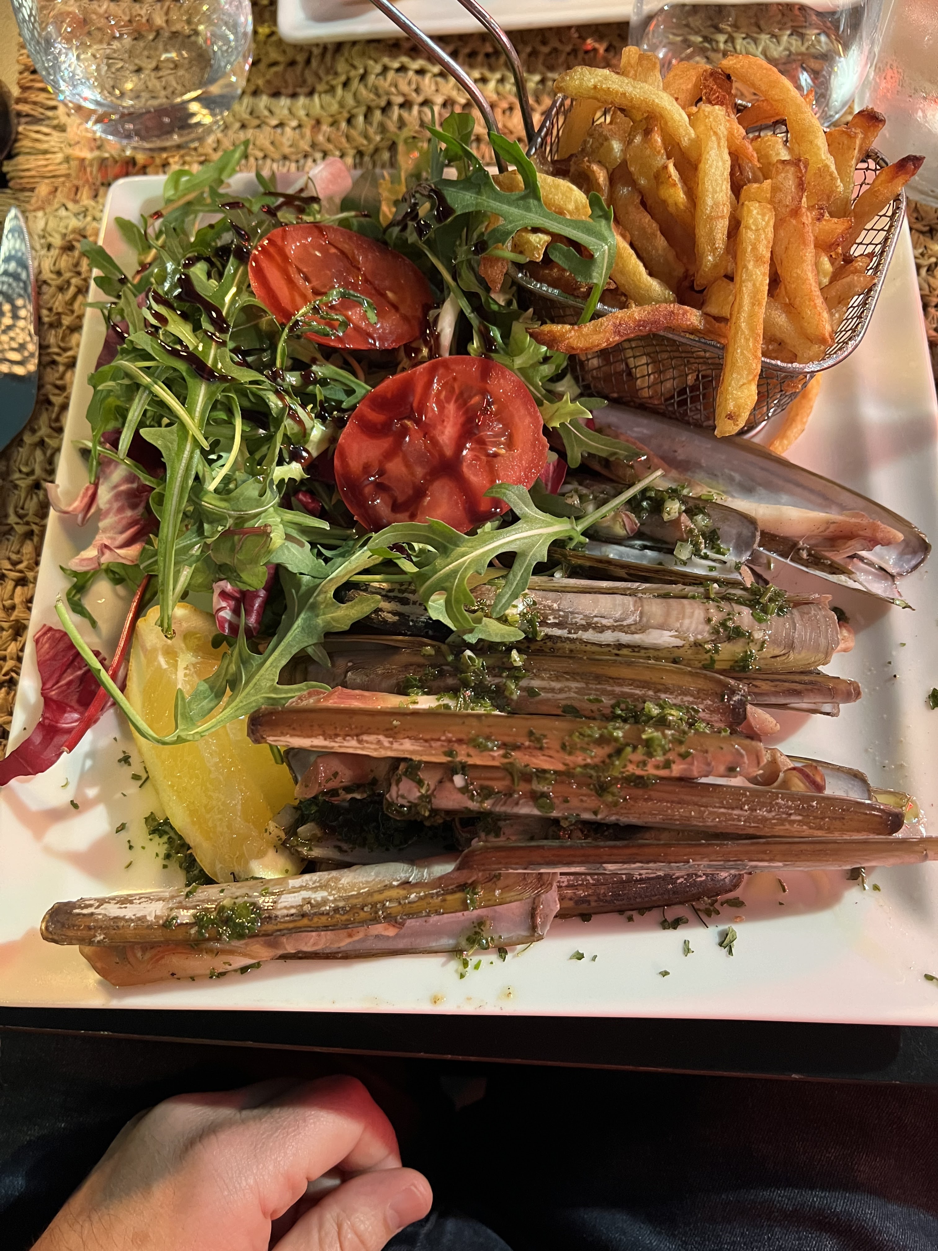 Pour 18 euros quand même Moules gratinées avec beaucoup de beurre et de panure mais un ensemble pas gouteux et qui, visuellement , ne donne pas envie. Sont elles fraîches pour un restaurant qui affiche le tout fait maison…? Seul un jeune serveur en job d’été est souriant. Sa jeune collègue crie bonjour mais elle est tellement désagréable qu’elle a fait fuir une famille. Bref …