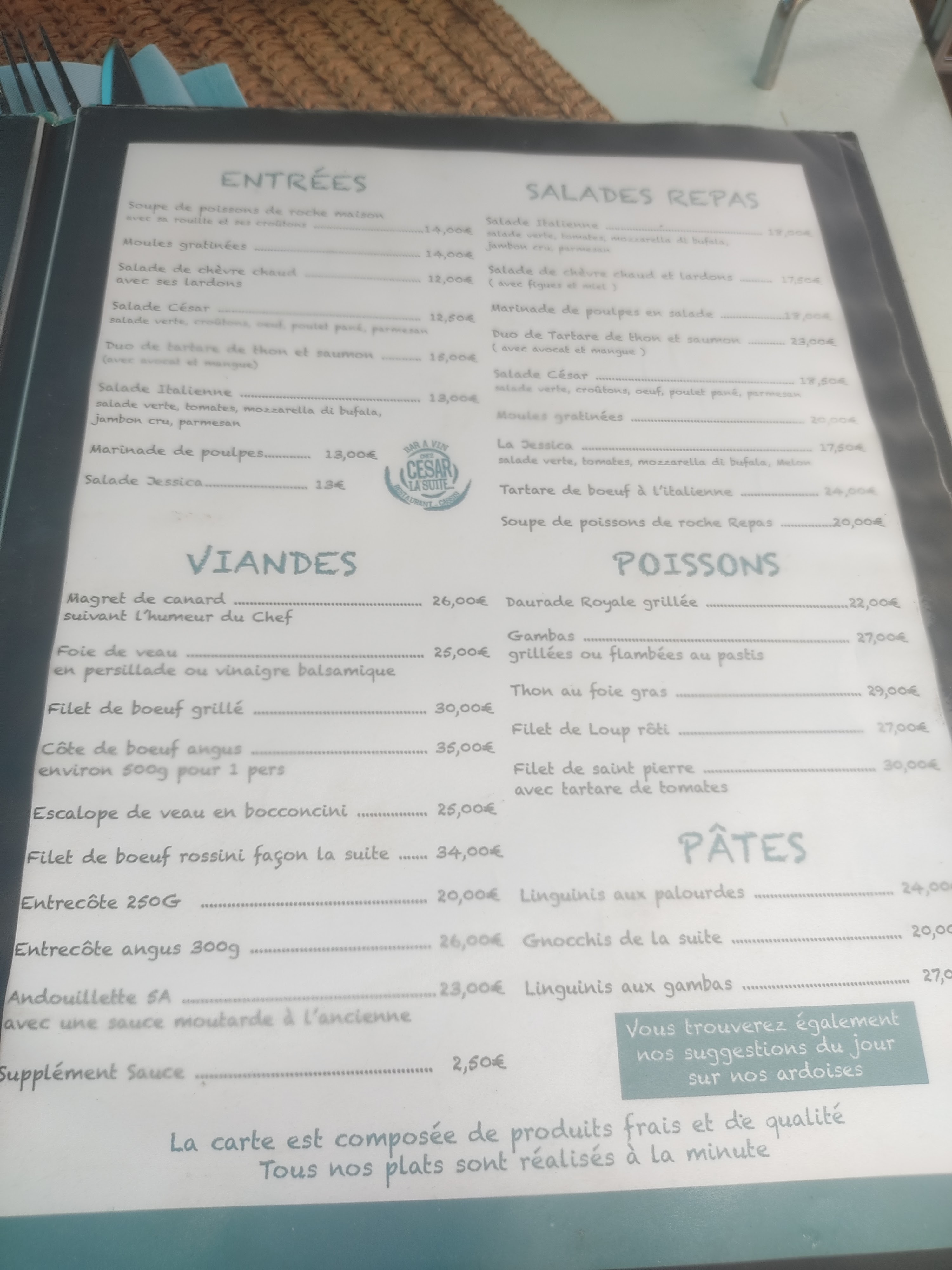 Si vous cherchez une adresse sympathique une cuisine délicieuse le tout avec une vue imprenable sur le port n'hésitez pas à déjeuner à César la suite.