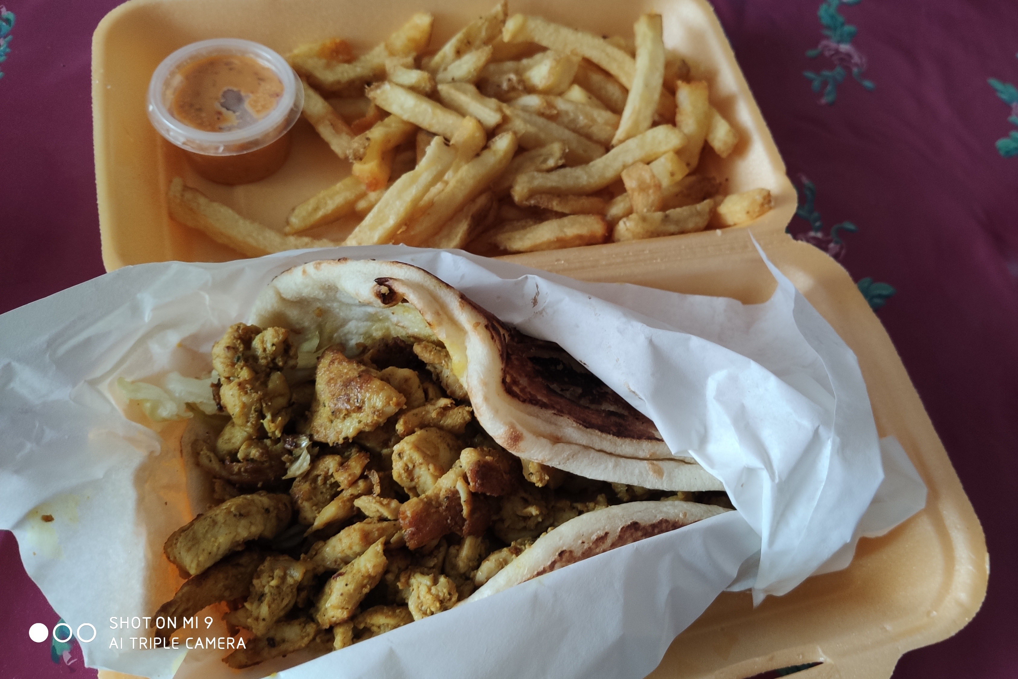 Le kebab est top, si je me trompe pas la broche n'est pas congelé. Service rapide, beaucoup de place pour se poser. Le pain naan c'est une dinguerie. Le bémol c'est l'amabilité qui manque un peu mais bon, ça vaut la qualité du kebab.