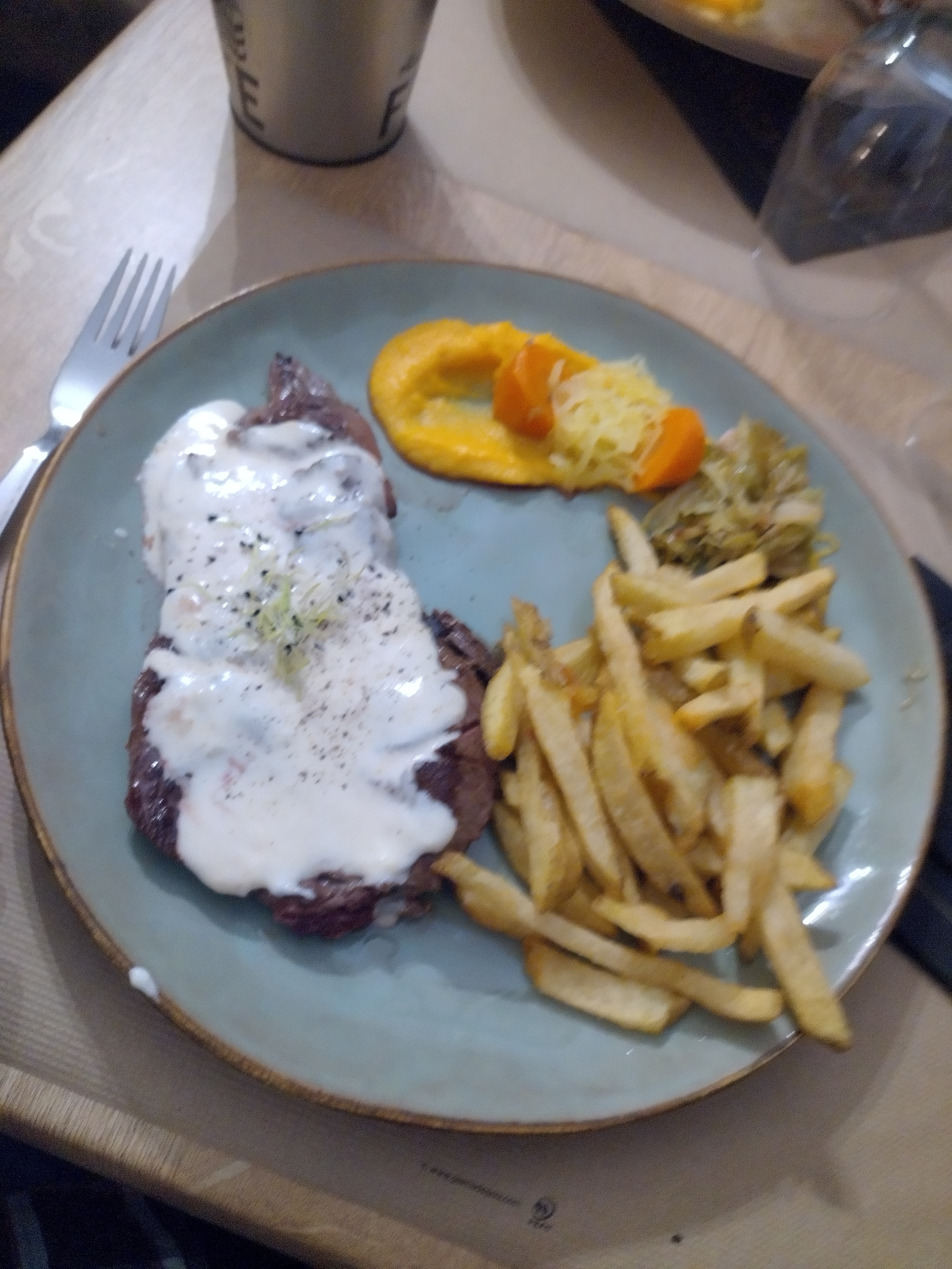 Excellent rapport qualité prix.Viande très tendre . Frites faites maison. Ambiance cosy .Pas bruyant. Je recommande vivement.