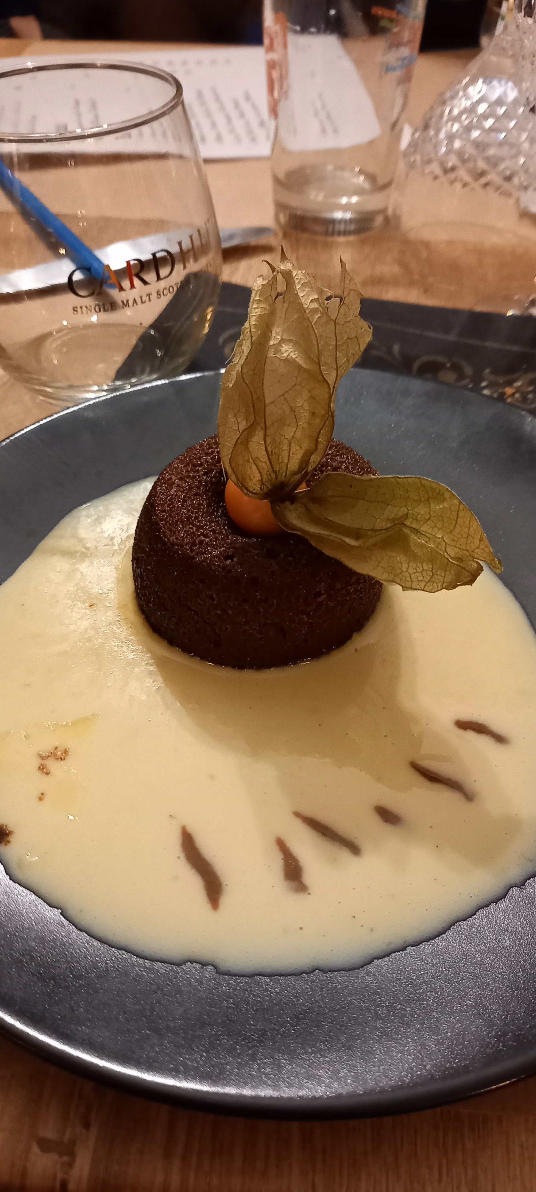 L'entrée au camembert était délicieuse, nous avons passé une bonne nuit mais la nourriture était vraiment médiocre. La côte de bœuf était trop grasse, les saucisses étaient froides, le dessert sortait du congélateur. Une meilleure viande chez votre boucher local. Servir de la nourriture sur une ardoise était par excellence un manteau de fourrure et pas de culotte.