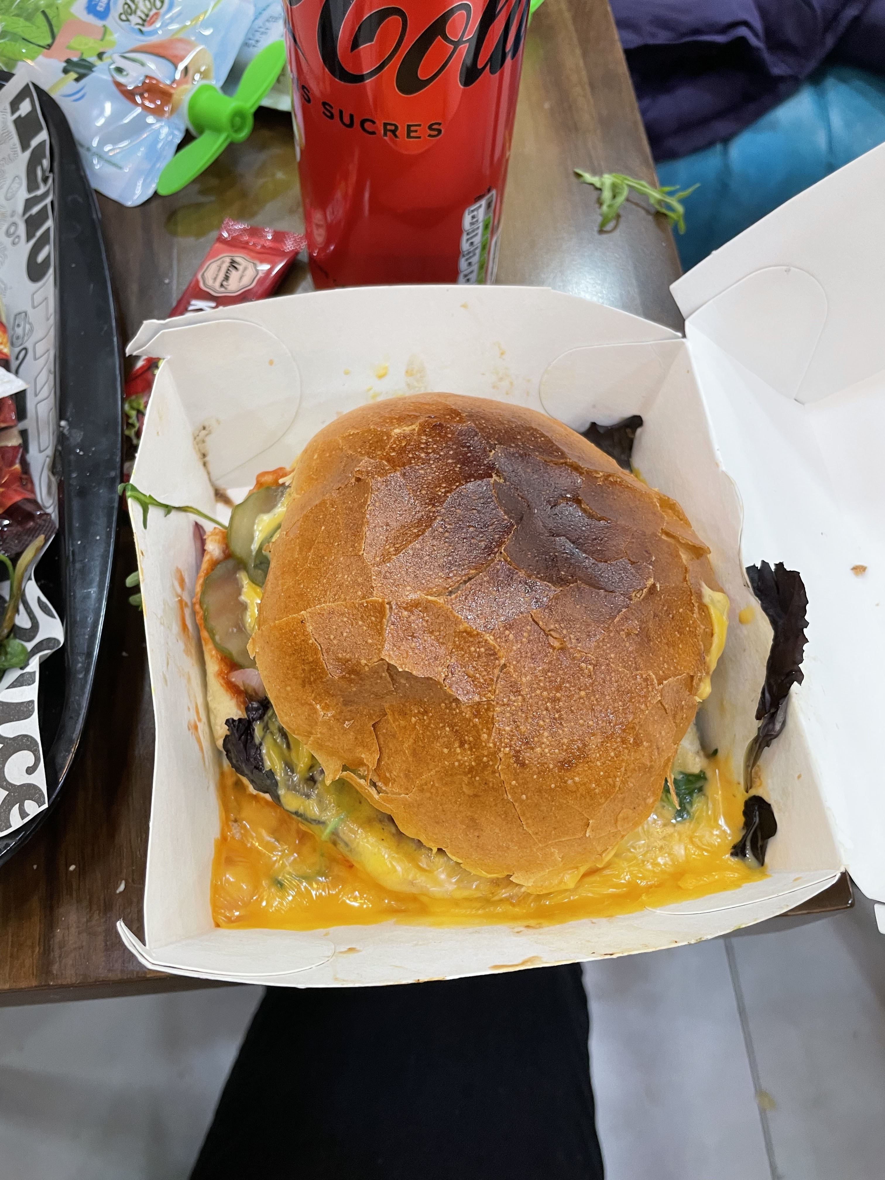 C’était abominable. J’ai commandé un « crispy » j’ai reçu un pain sec avec de la viande pas fraîche du tout, une sauce sans goût, trop de tomate (tomate entière limite). Pas assez de d’ingrédients. Cela m’a rendu malade et dégoûté .