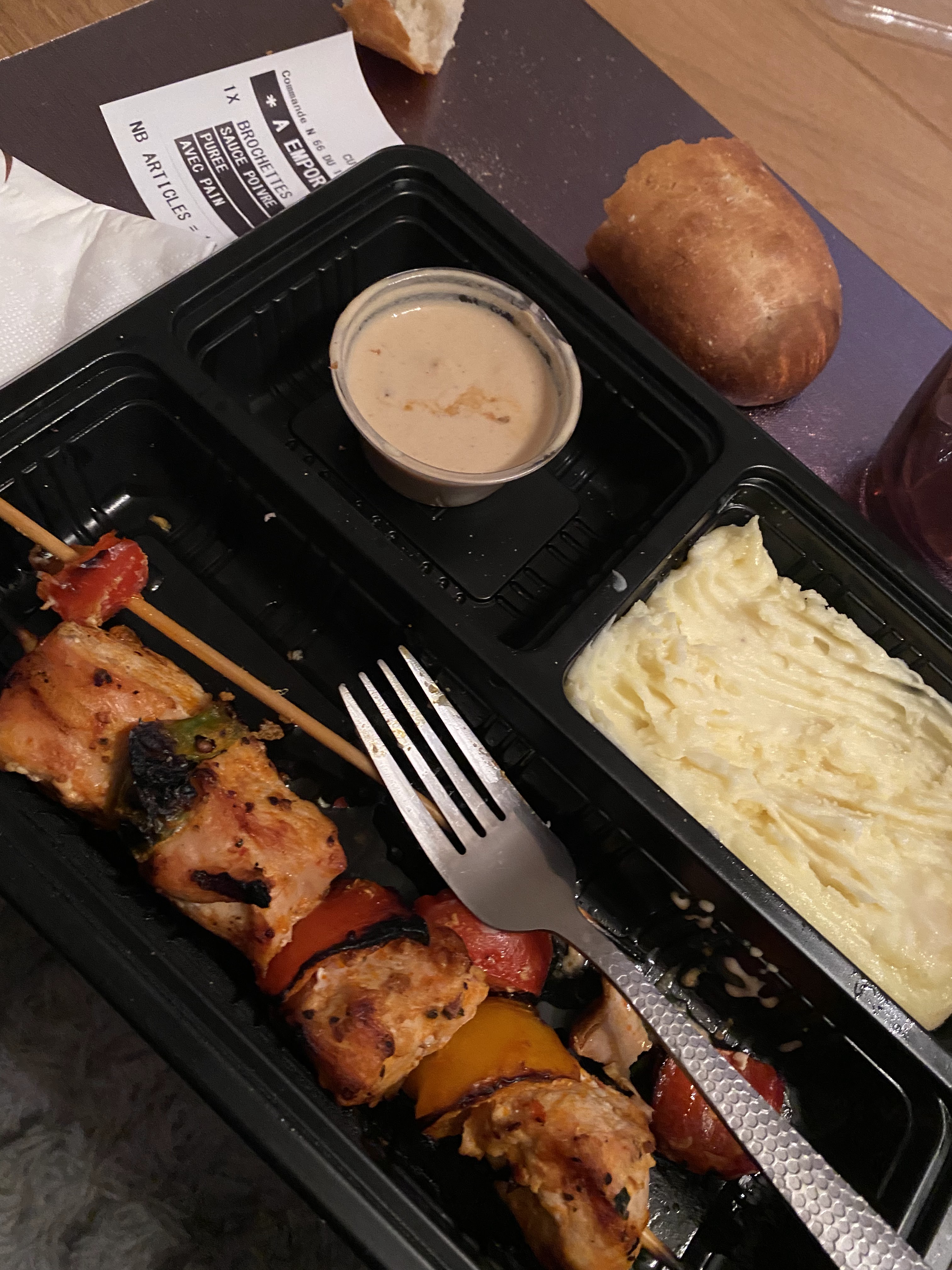 Bonjour, vous vous êtes trompé au niveau des commandes. J'ai pris une purée, pas faite maison et raté les flocon de mousline n'étais pas assez bien mélange. Pas assez de frite sur le plateau, on a été un peu dessus, le niveau a baissé.